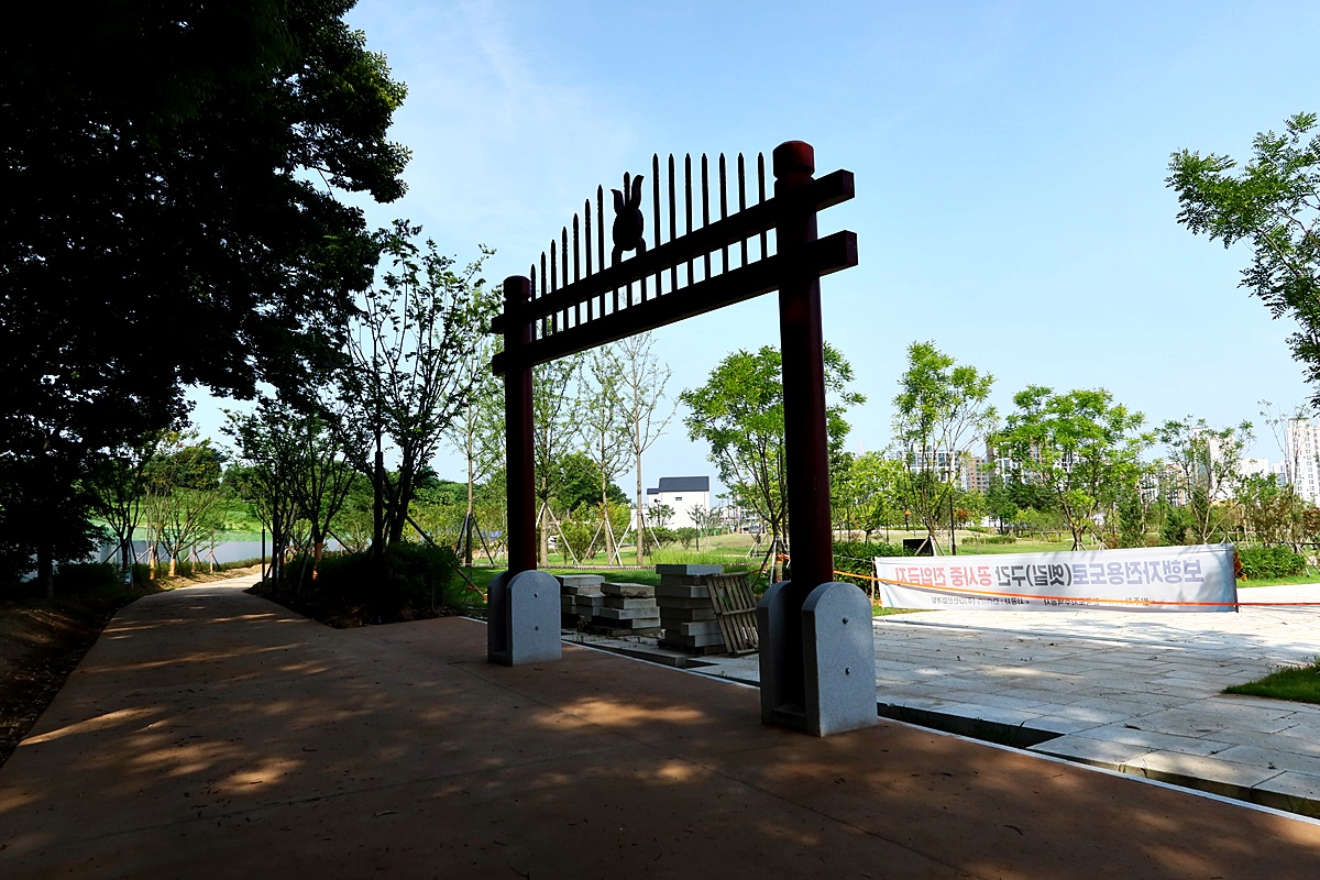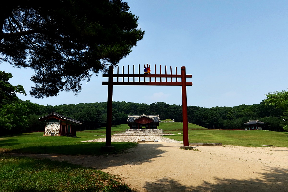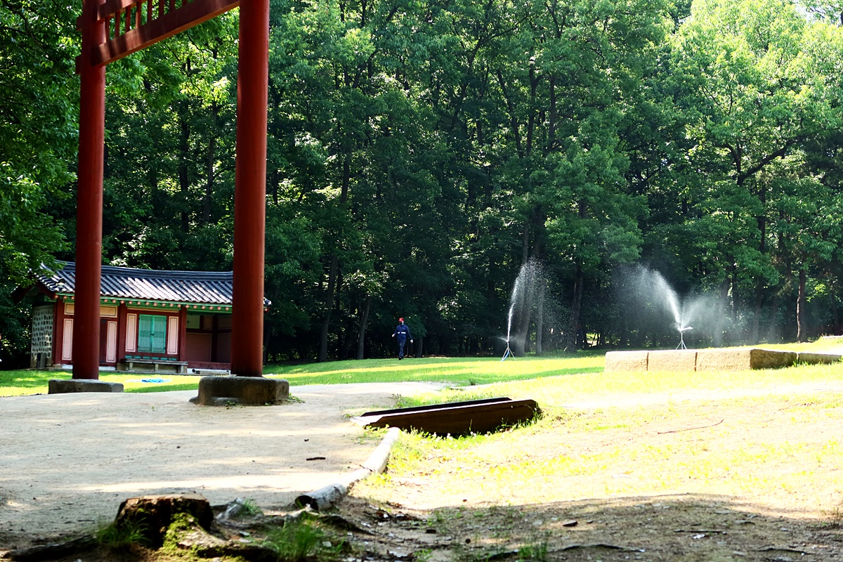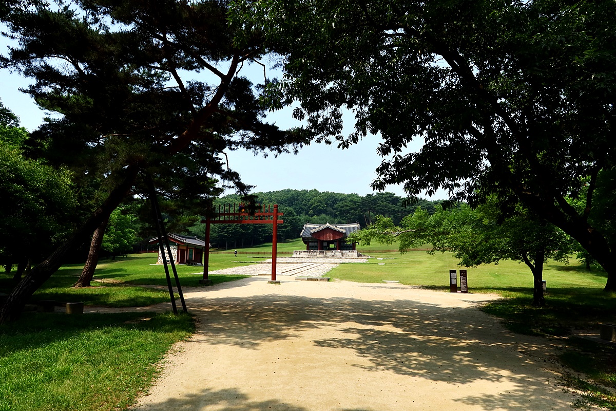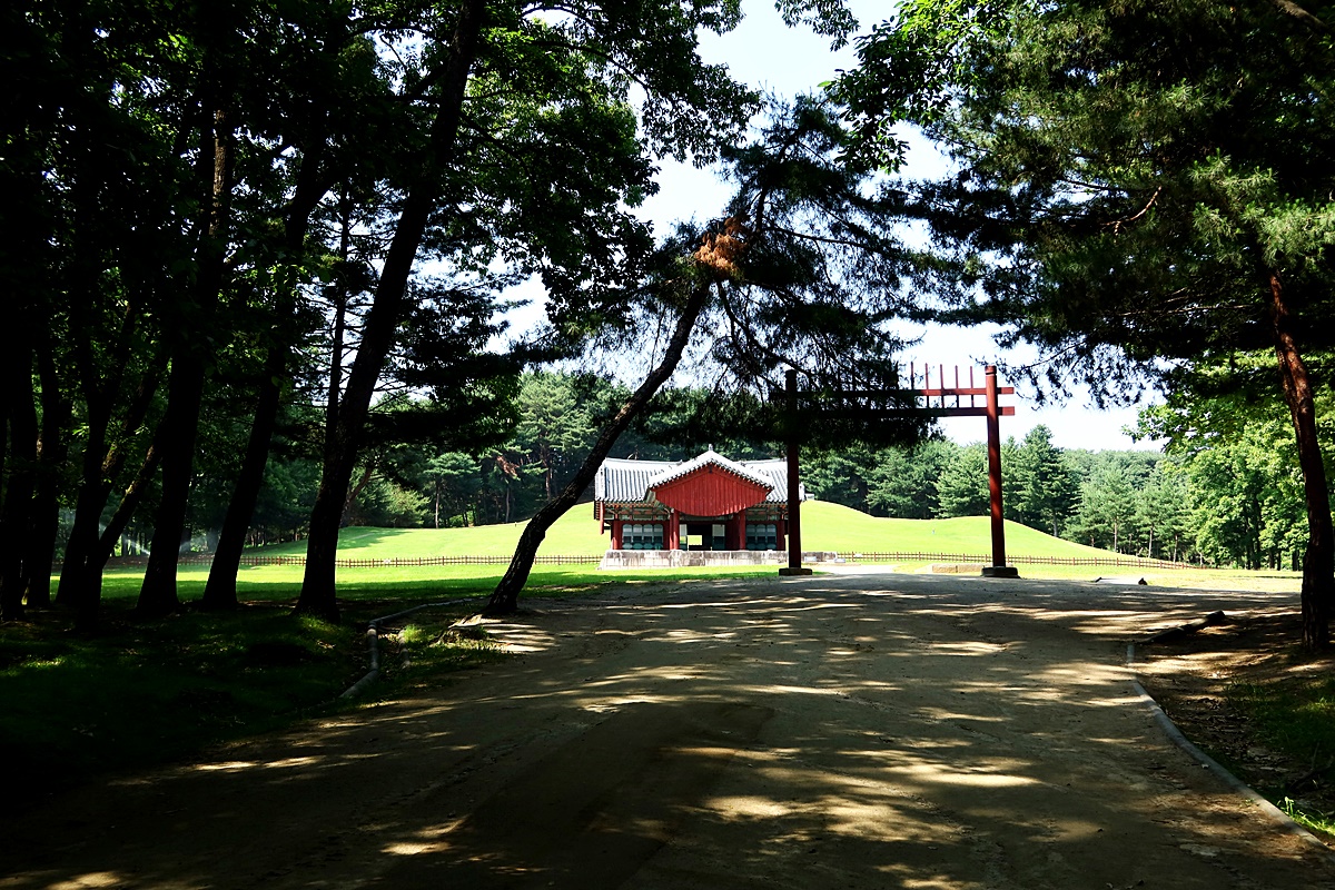 정조 초장지 앞에 보이던 홍살문은 신도시를 건설하면서 최근 세운 것.