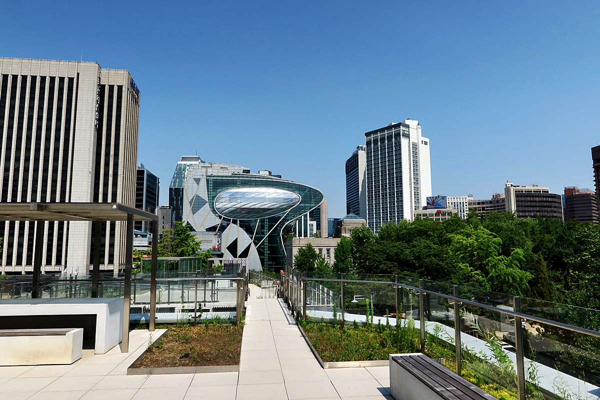 전시관에는 옥상정원(서울마루)을 조성하여 시민광장으로 개방한 모습.