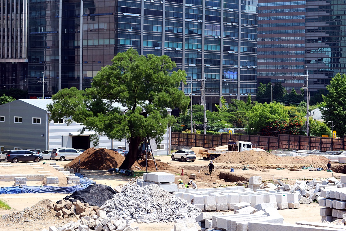옛 사진에서도 나와있는 회화나무를 기준으로 흥덕전 복원사업을 2027년까지 마칠 계획.