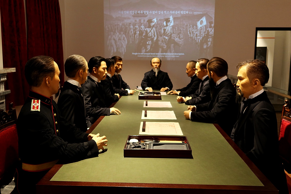 중명전에서는 1905년 일본의 강압속에서 우리의 외교권을 박탈당하는 을사늑약이 강제로 체결된 비운의 장소.