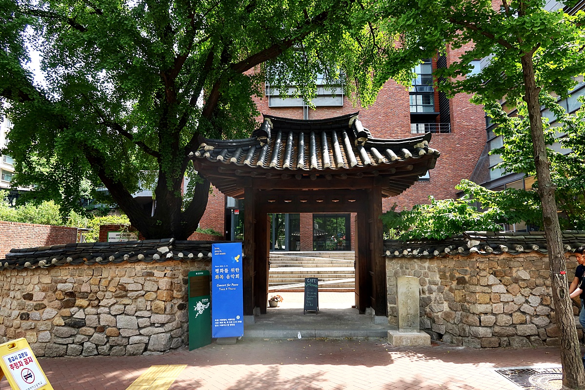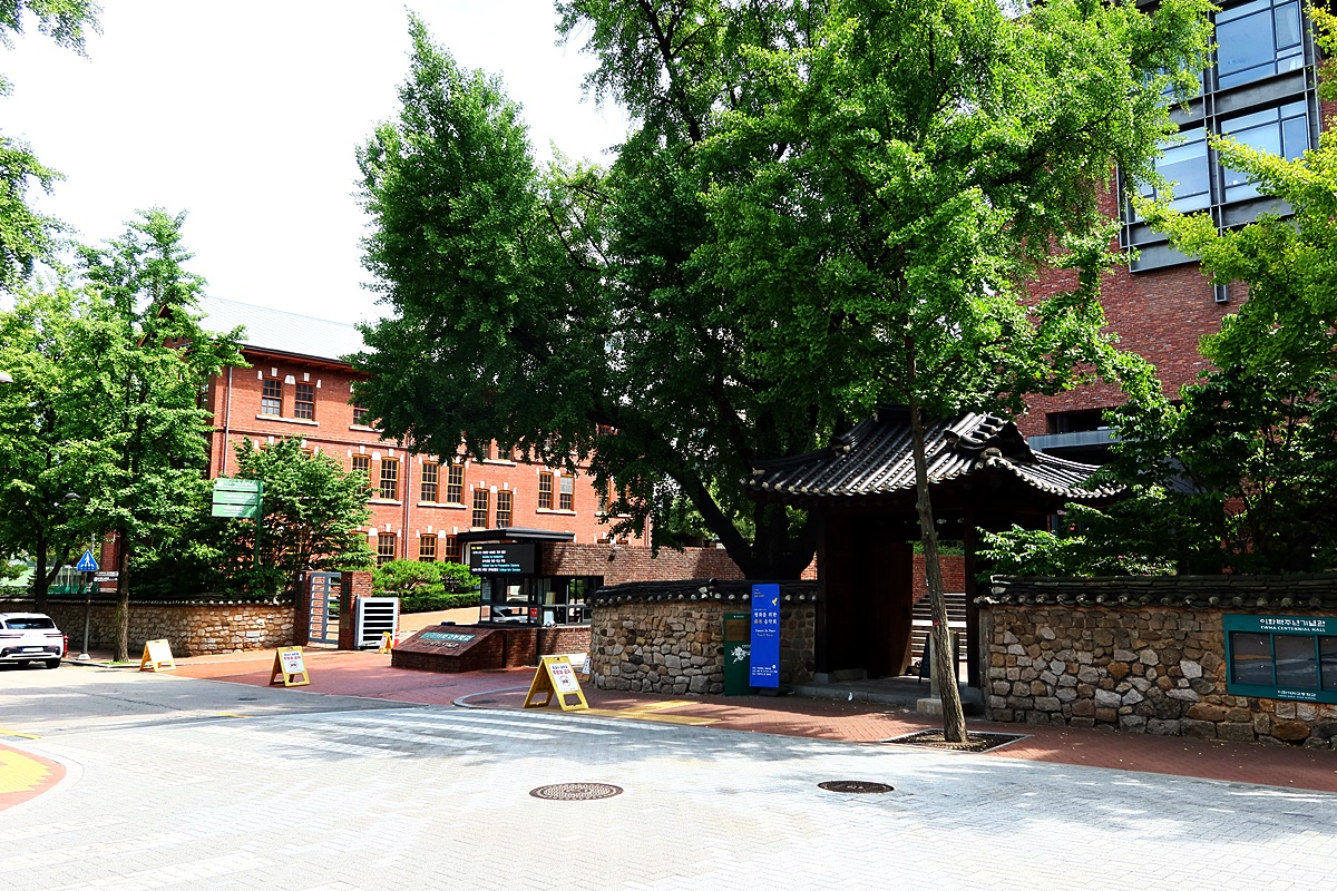 이화의 옛 대문으로 1923년 이전시 일본풍으로 교란되었던 것을 1999년 조선시대 전통 사주문으로 복원하였다고 합니다.