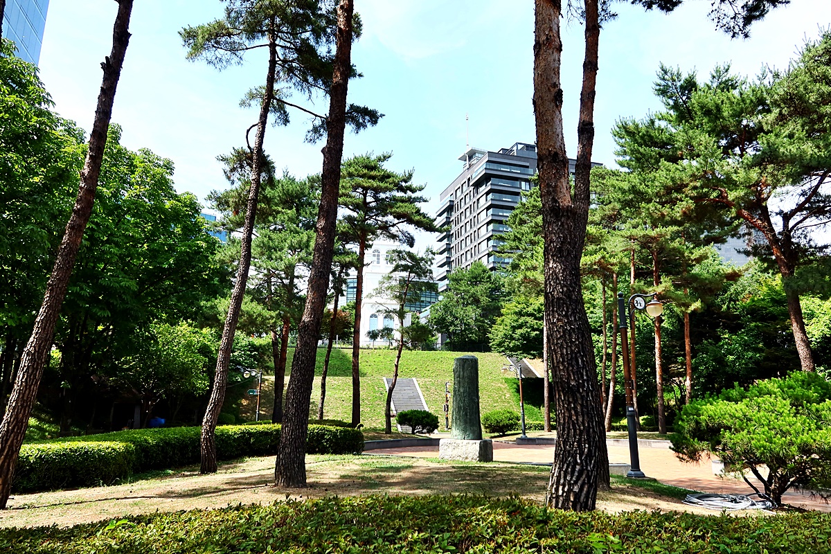 정동공원, 상림원아파트 등에 땅을 내어준채 좁은 터만 남아 있는 옛 러시아공사관.