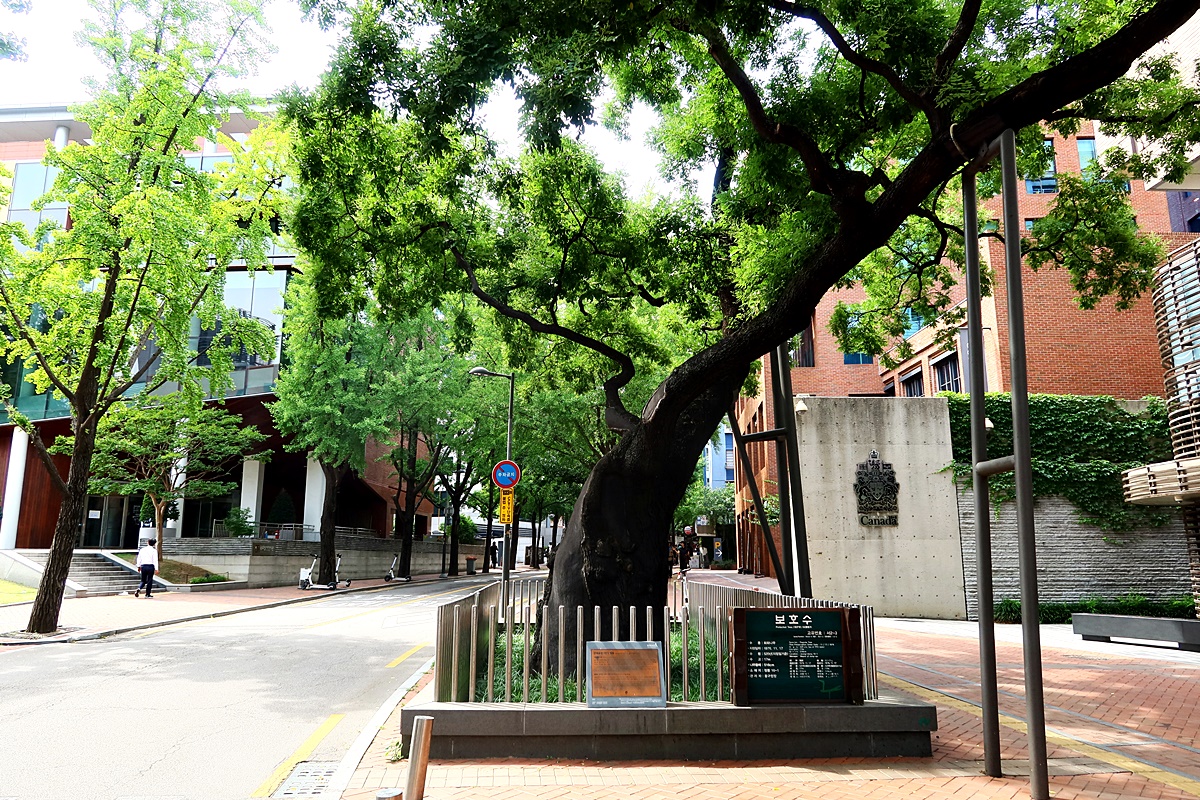 회화나무 앞에 있는 캐나다대사관.