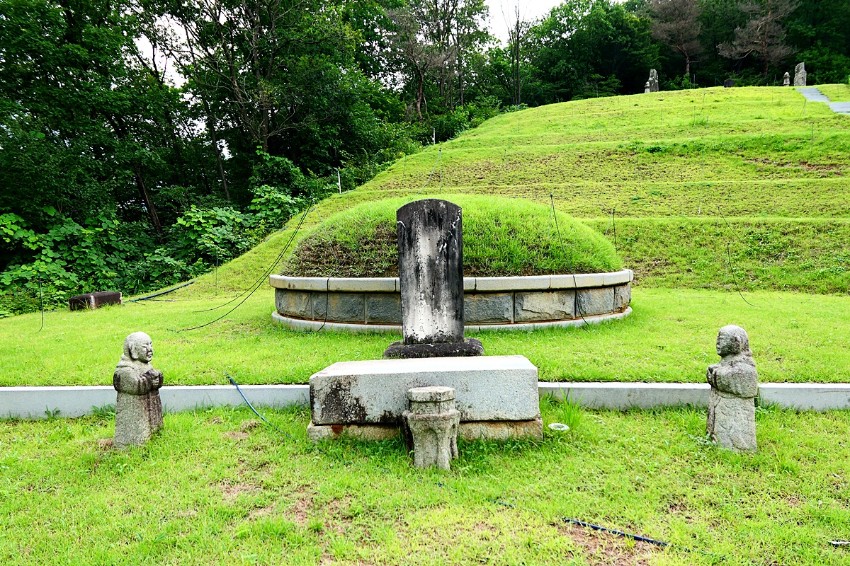 묘표와 동자석, 망주석, 문인석, 상석 등이 갖추어진 한음의 묘소.