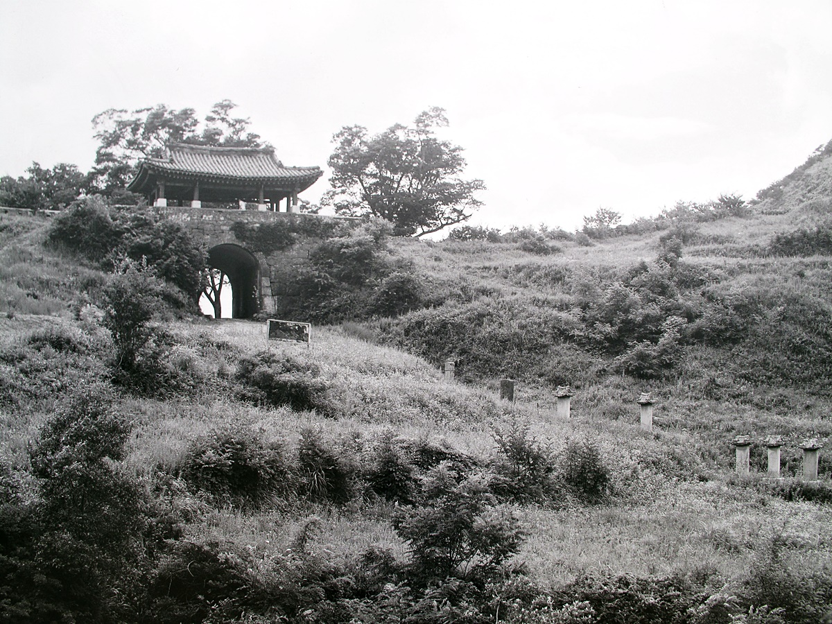 얫 사진 - 남한산성 안쪽에서 바라본 남문과 선정비들.