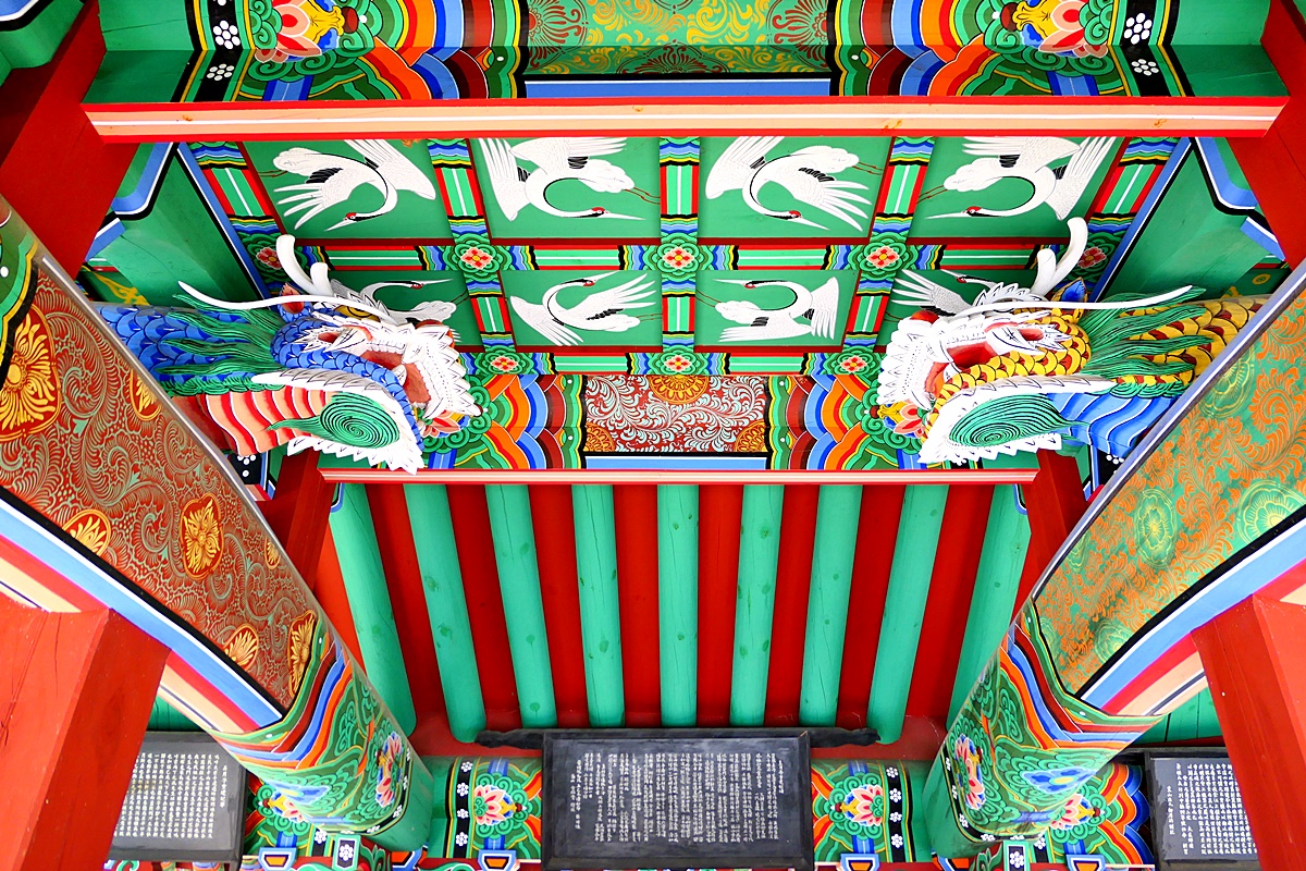 용 2마리가 서로 마주보고 있는 농월정 천장.