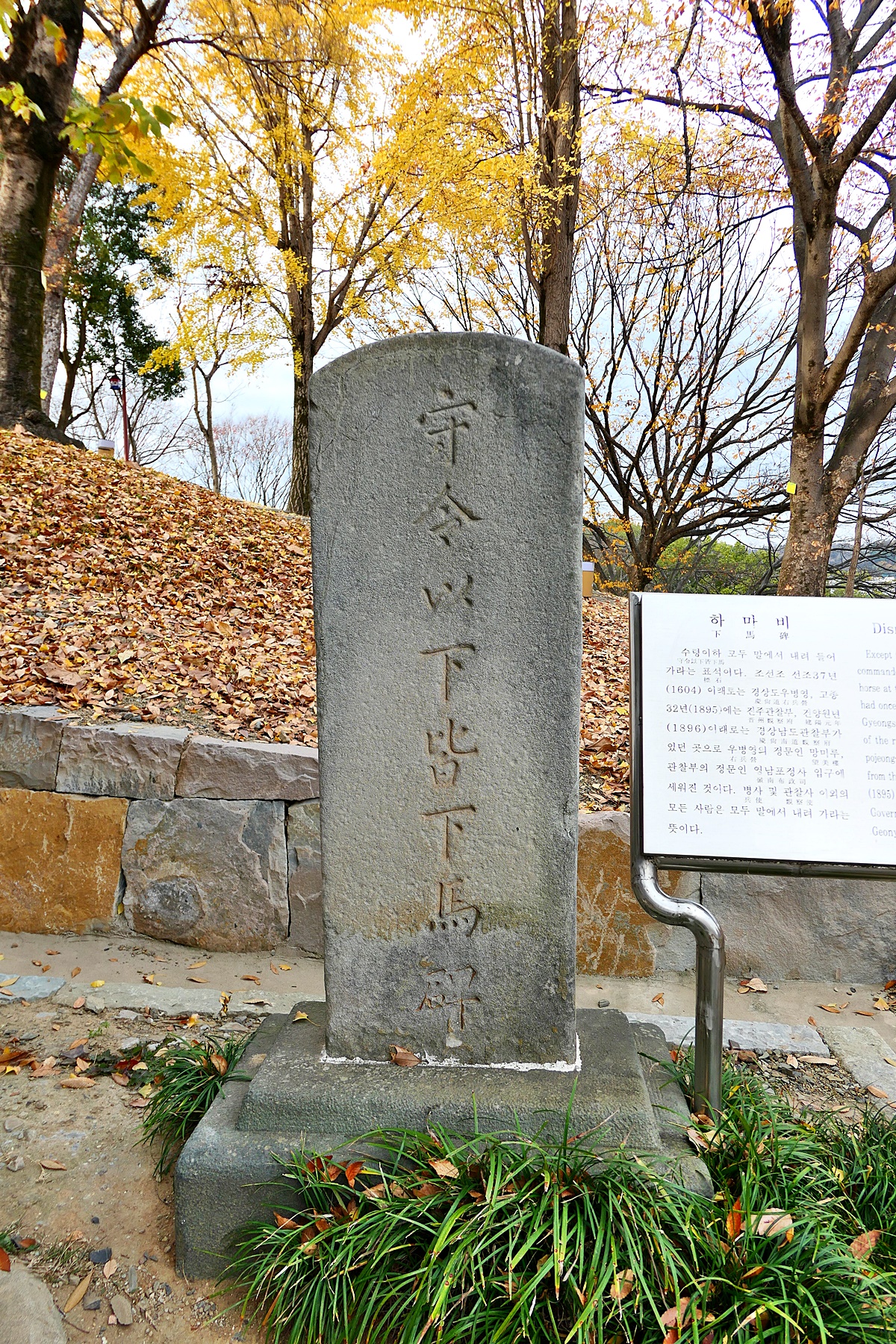 수령 이하의 모든 사람은 말에서 내려 걸어 들어가라는 경고성 문귀.