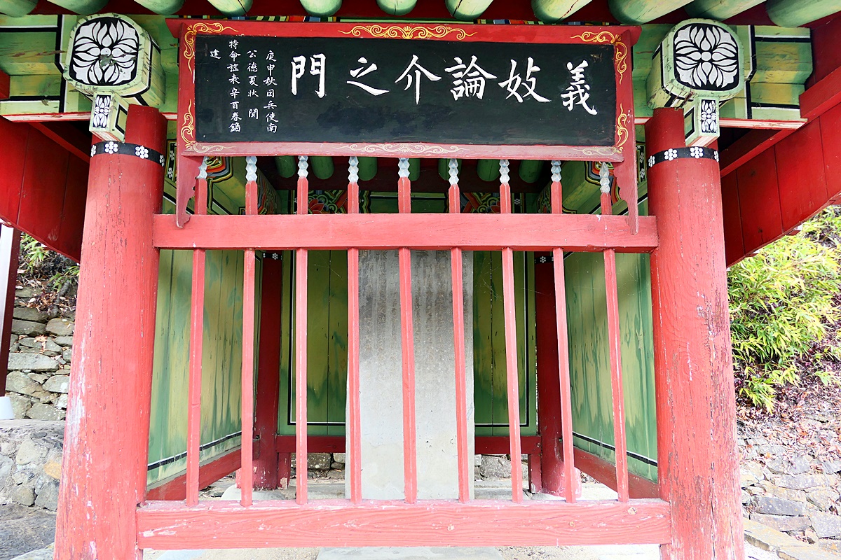 의기논개지문(義妓論介之門)이라는 편액이 달린 의암사적비.