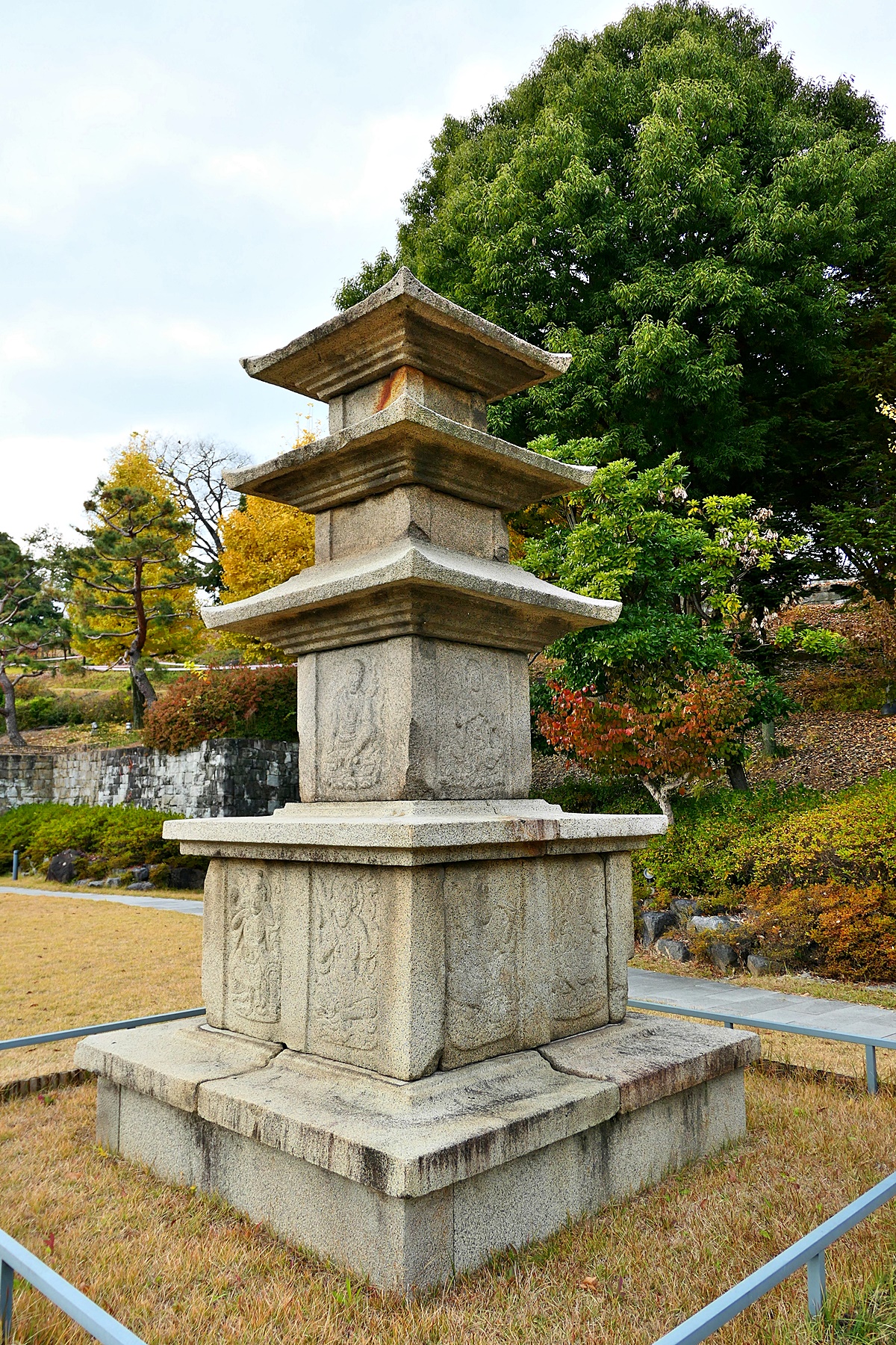 국립진주박물관 뜰에 있는 산청 범학리 3층석탑(국보).