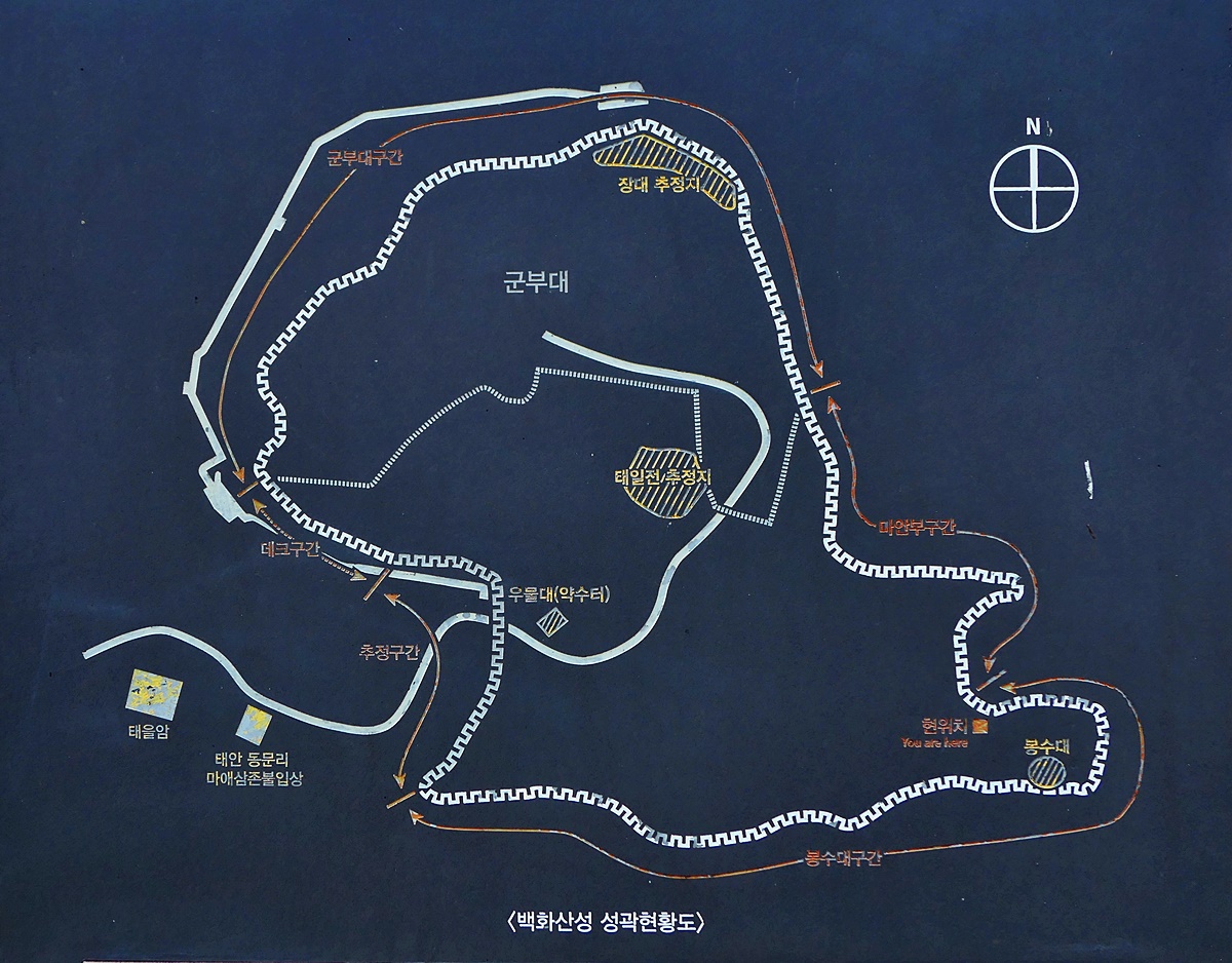 2년전 정상부에서 발굴조사된 태일전(太一殿)터는 도교제사를 지내던 유서 깊은 곳으로 추가발굴을 통해 전모를 밝혔으면 합니다.