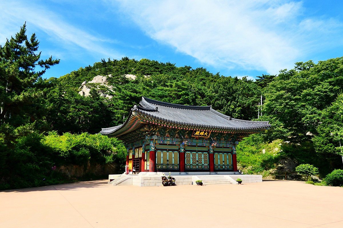 태안 바다를 내려다보며 서있는 태을암 대웅전.