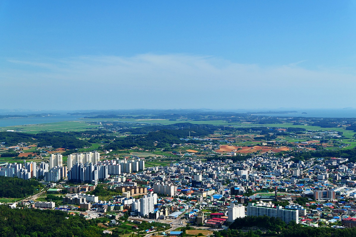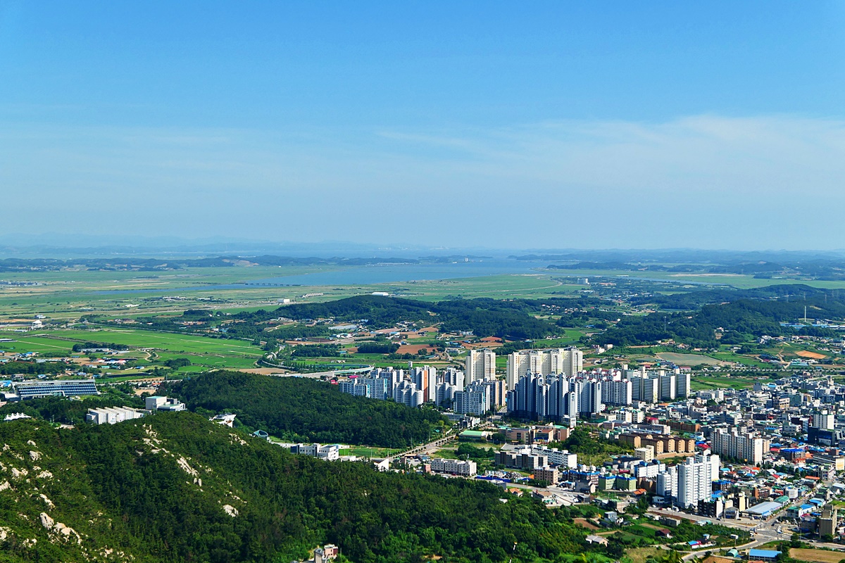 중앙부의 산은 도비산(352m)으로 서산8경중 하나이며 천년고찰 부석사가 있고 천수만이 잘 조망되는 멋진 산이지요.
