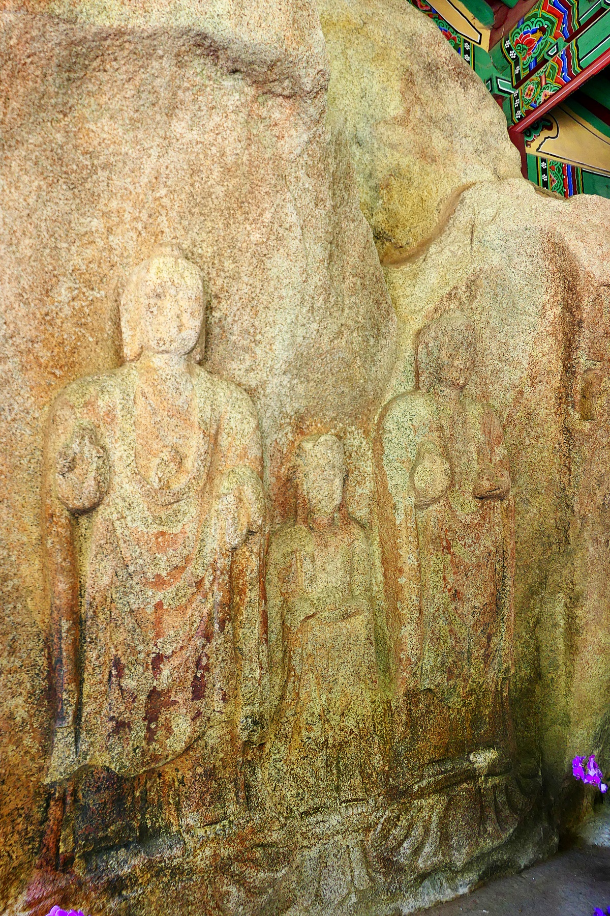 백제때 조성된 우리나라 마애삼존불의 초기 양식을 엿볼수 있는 작품으로 마모상태가 무척 심해 안타까운 실정.