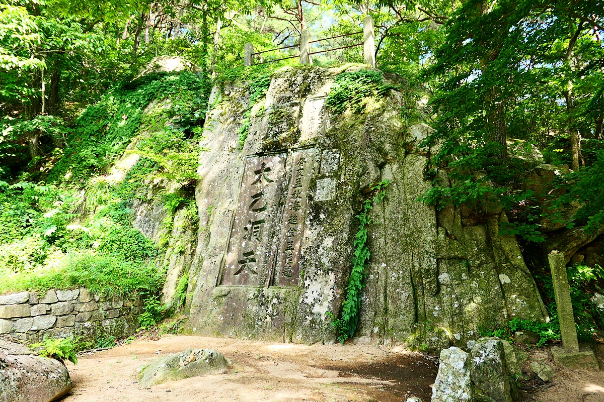 과거 이기석(李基奭) 군수가 이 바위 앞에 느티나무 2그루를 심은 기념으로 새겼다고.