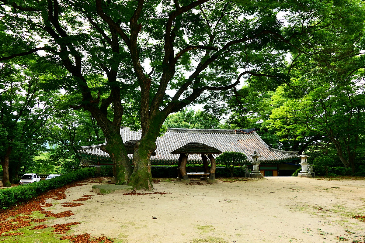 느티나무 노거수가 있는 원통보전 앞 풍경.