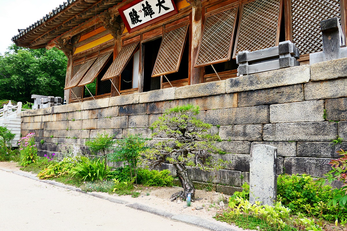 맞배지붕 모습을 하고 있는 대웅전 측면.