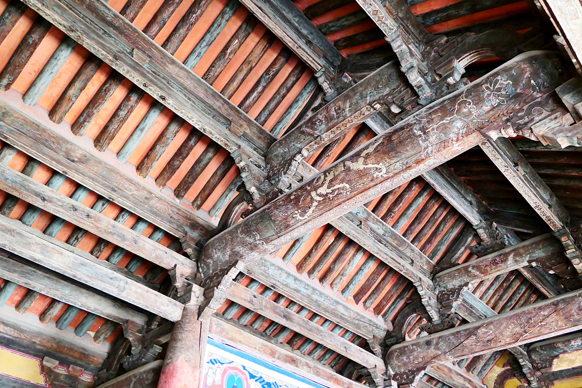 고색창연한 대웅전 천장 모습.