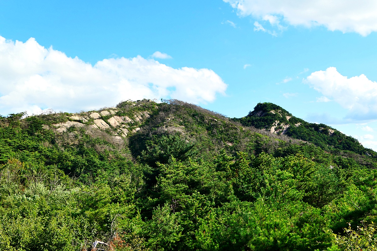 동쪽으로 인왕산 정상과 왼편의 기차바위.