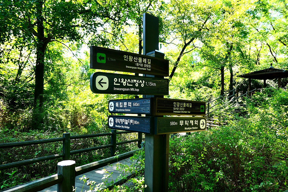 인왕산둘레길의 홍지문까지 5.1km, 인왕산 정상 1.15km를 가리키네요.
