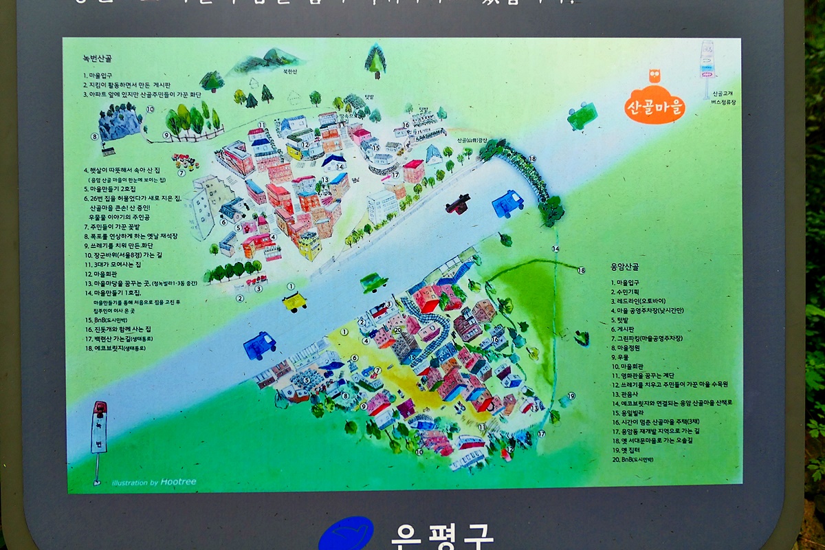 오호, 은평구 녹번역 방향으로 조금 내려오니 산골마을 표지판~!