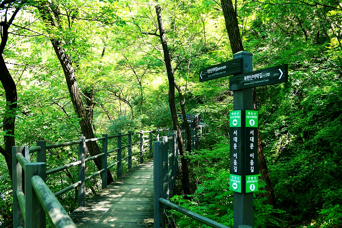 서대문이음길 3코스와 거의 같은 코스로 산림욕을 즐기며 노약자들이 이용하기 편하게 무장애데크길로 되어 있는 북한산자락길 4.5km.