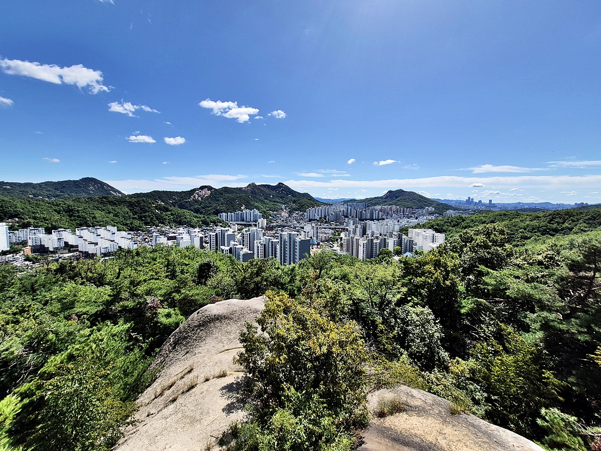 북한산 자락에서 서대문구 홍은동, 홍제동을 너머 북악산, 인왕산, 안산까지 일망무제이니 정말 시원하고 통쾌한데요.
