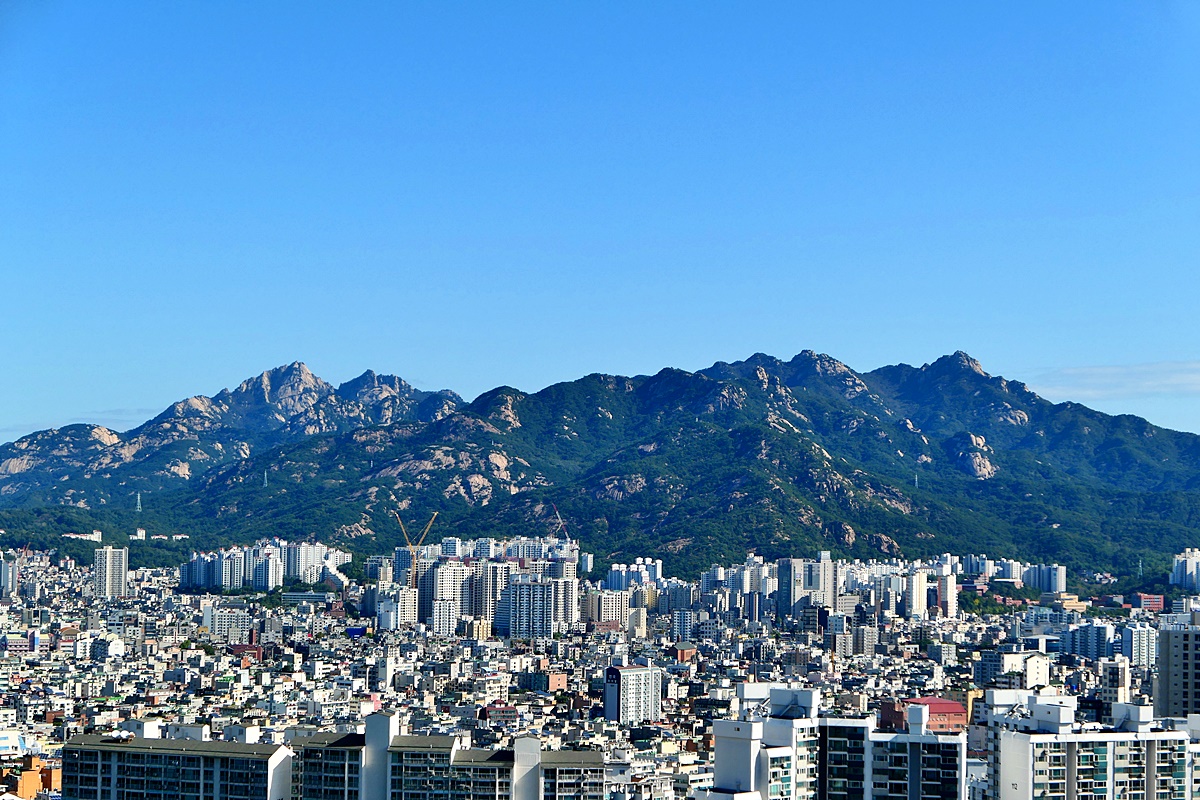 남쪽으로 백련산과 그 뒷편으로 북악산, 인왕산, 안산이 보네요.