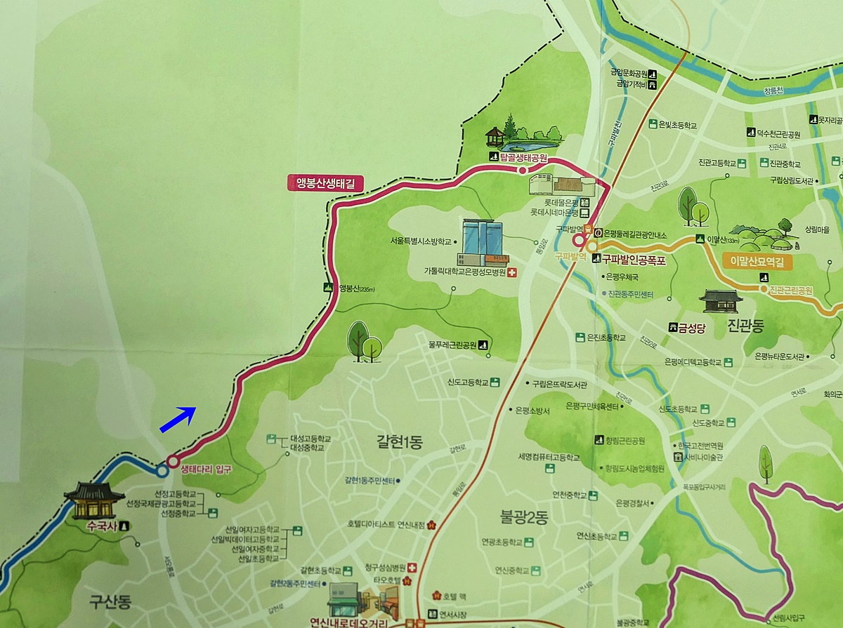 오늘 걸은 2코스는 앵봉생태길로 서오릉고개~앵봉산~구파발역까지 약 3.8km인데요.