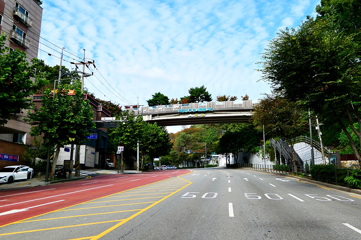 2018년에 생태다리가 개통되기 전만해도 고개에 까지 내려갔다가 다시 앵봉산으로 올라가는 길이 경사가 심해 최악이었지요.ㅎㅎ