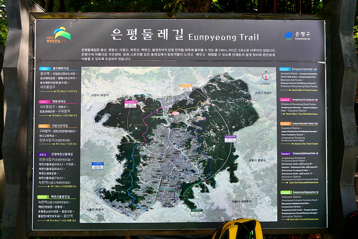 은평둘레길은 봉산, 앵봉산, 이말산, 북한산, 백련산, 불광천까지 은평구 전역을 둥그렇게 한바퀴 걷는 길로 모두 5개 코스에 총 24km에 달하는데요.