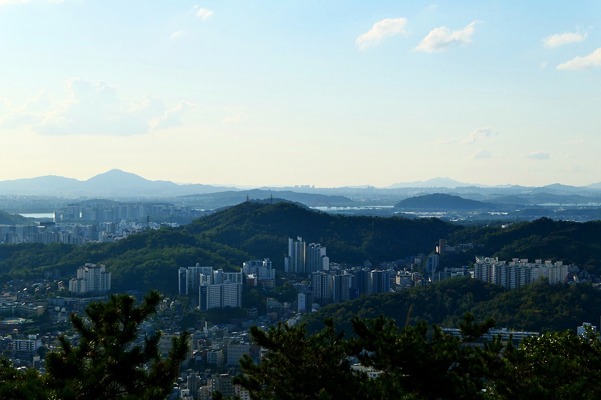 앞에 봉산 능선에서 멀리 일산까지 잘 보이네요.