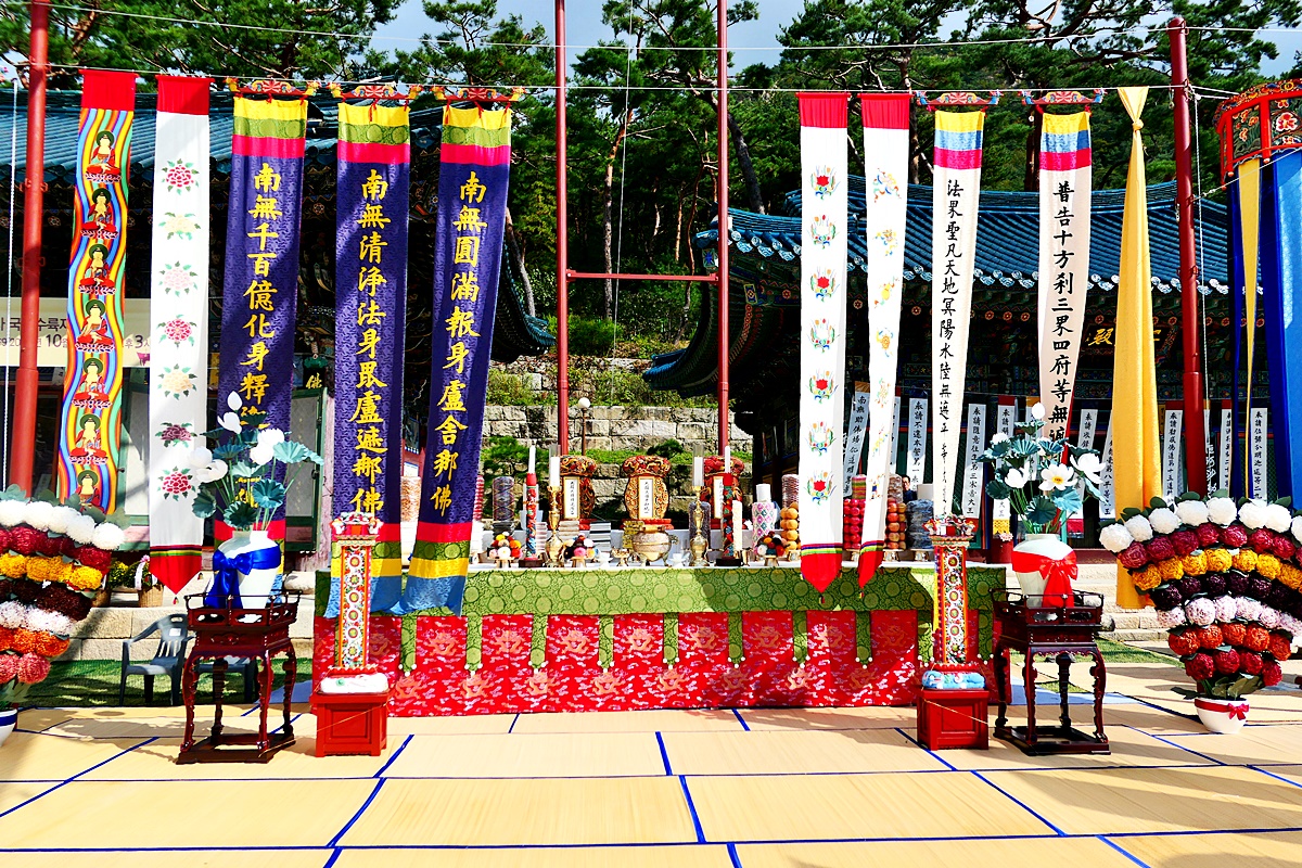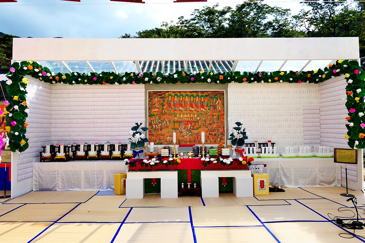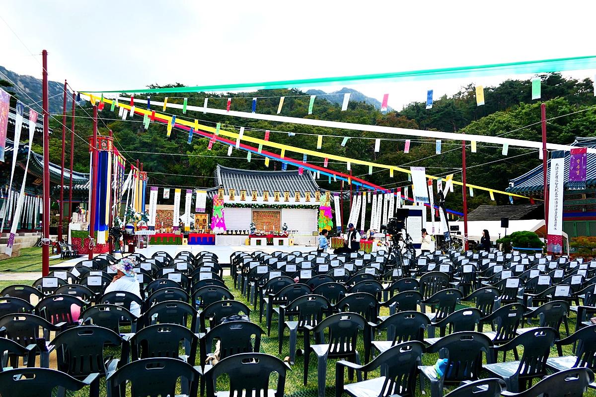 국행수륙대재 행사장으로 대웅전 앞 마당이 법석(法席).