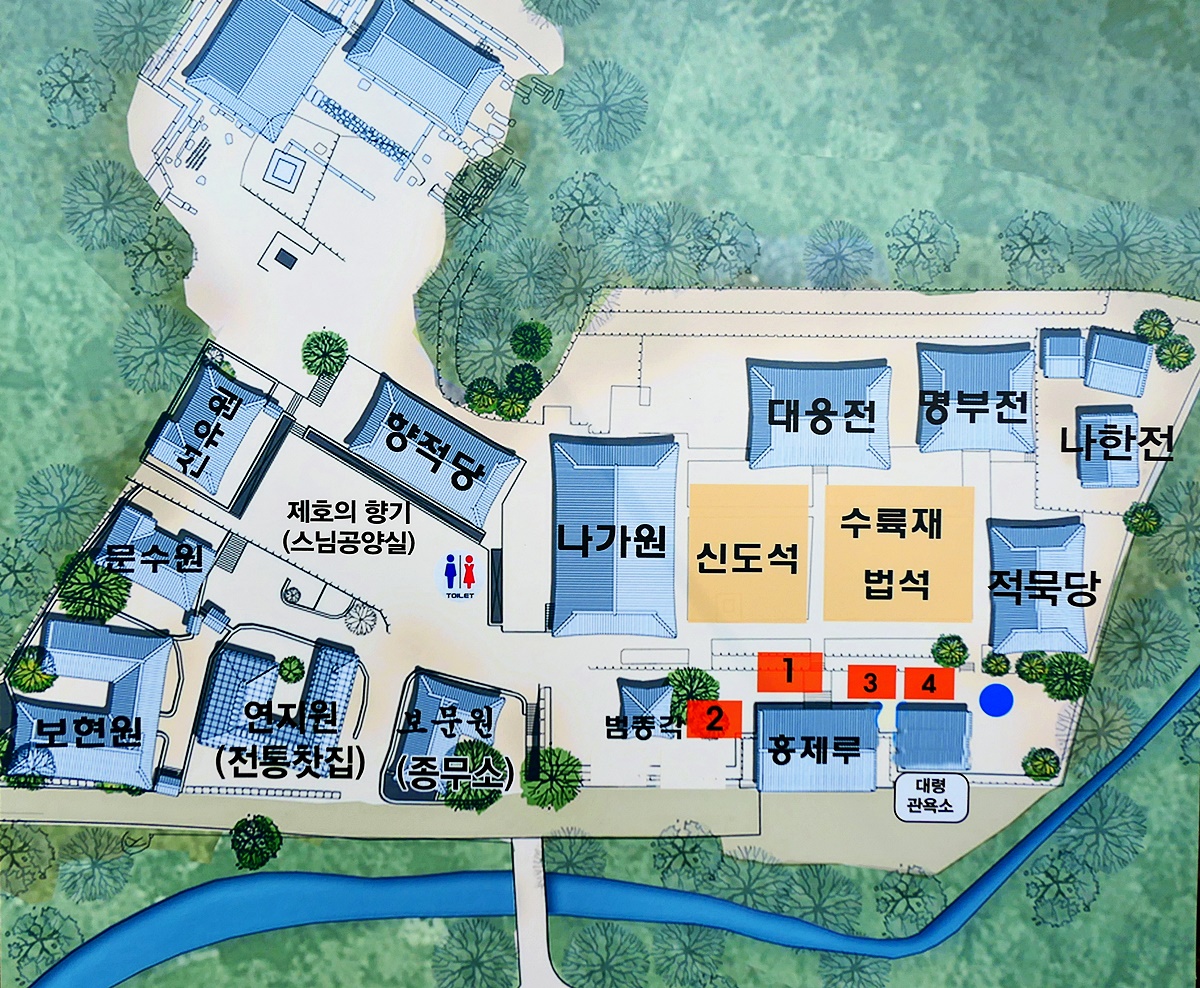 (9) 사자단(使者壇) ㅡ 수륙재가 열림을 알리기 위해 말을 탄 사자를 청해 공양을 올리고 말이 쉴수 있는 마구단을 홍제루 아래에 설치