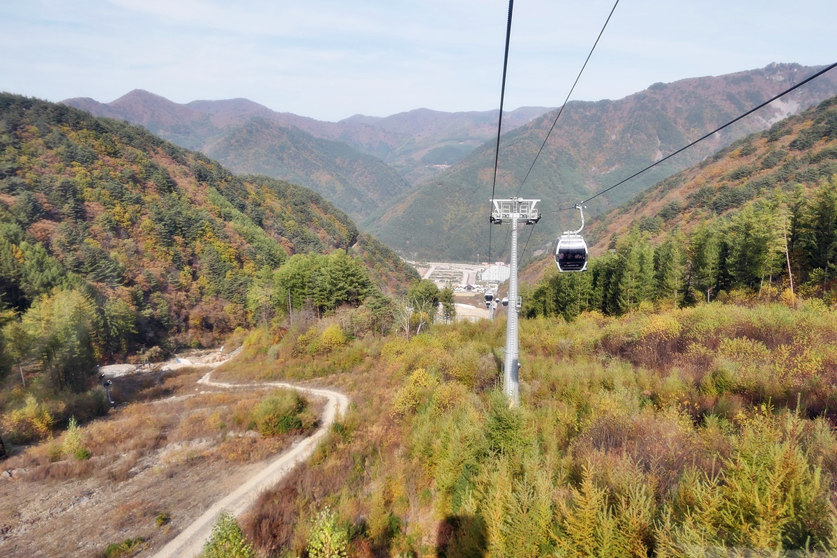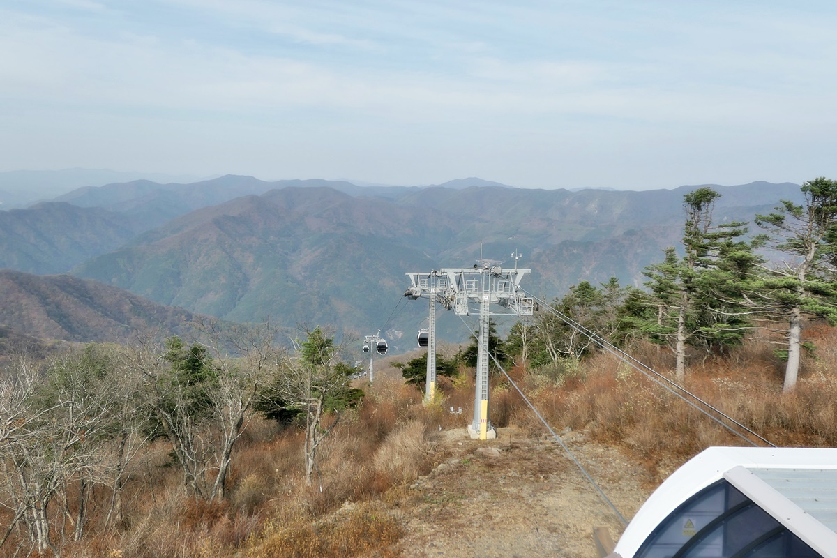스키장은 생태복원을 위해 폐쇄되었지만 관광용 케이블카는 운행중인 상태.