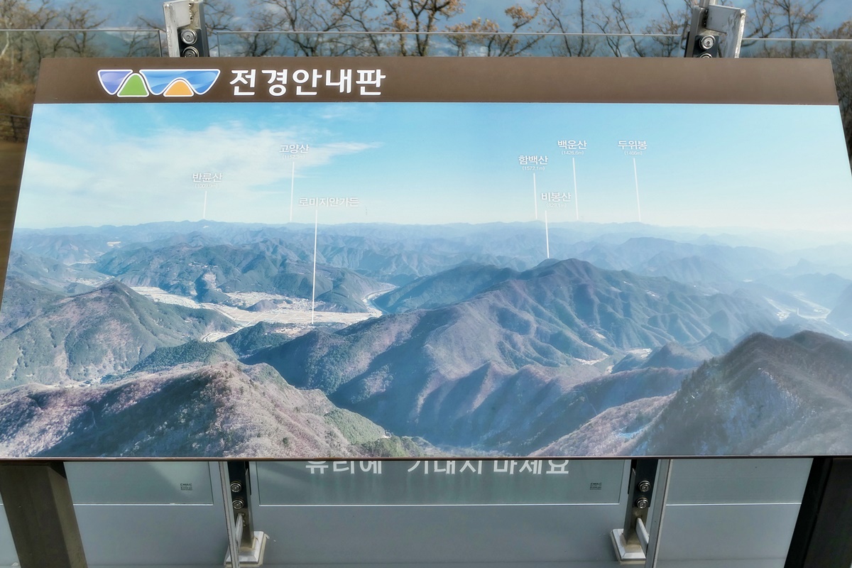백두대간의 함백산, 백운산, 두위봉이 보이는 전경안내판으로 대신합니다.