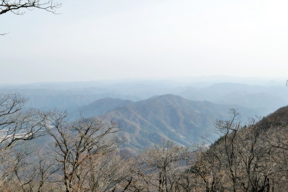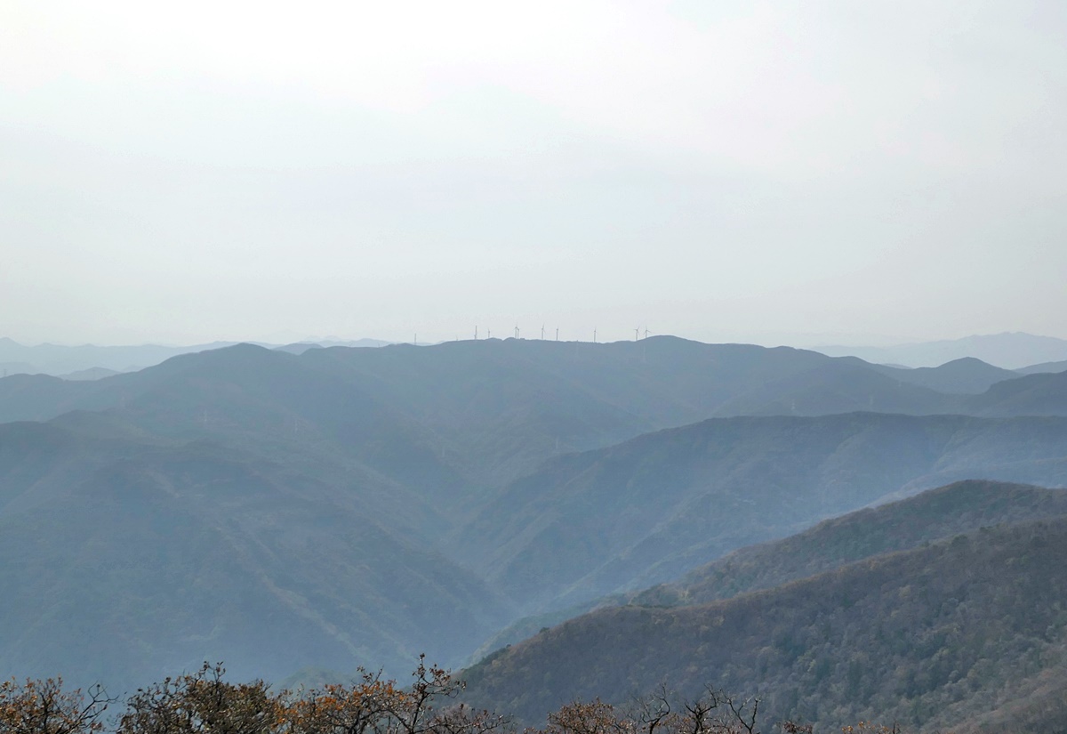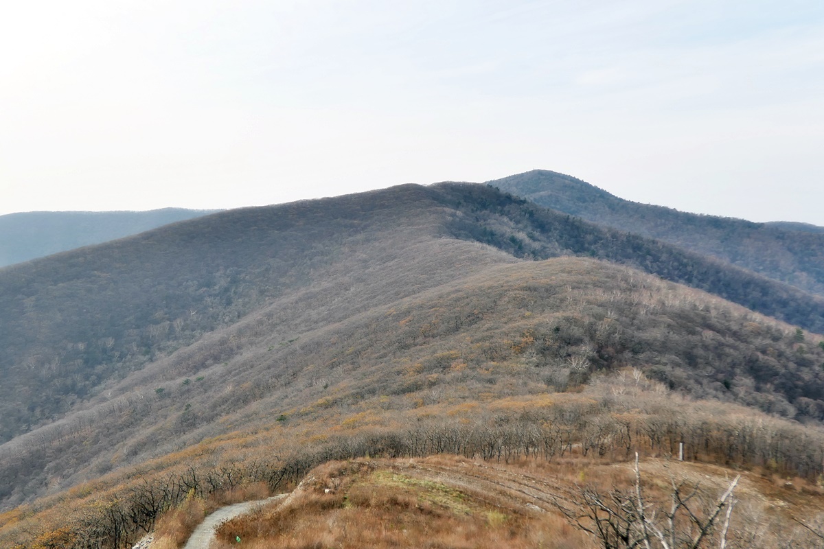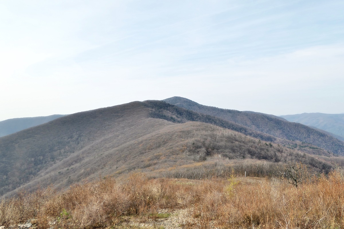 멀리 서쪽으로 희미하지만 평찬군 미탄면에 위치한 육백마지기가 있는 청옥산(1,257m).