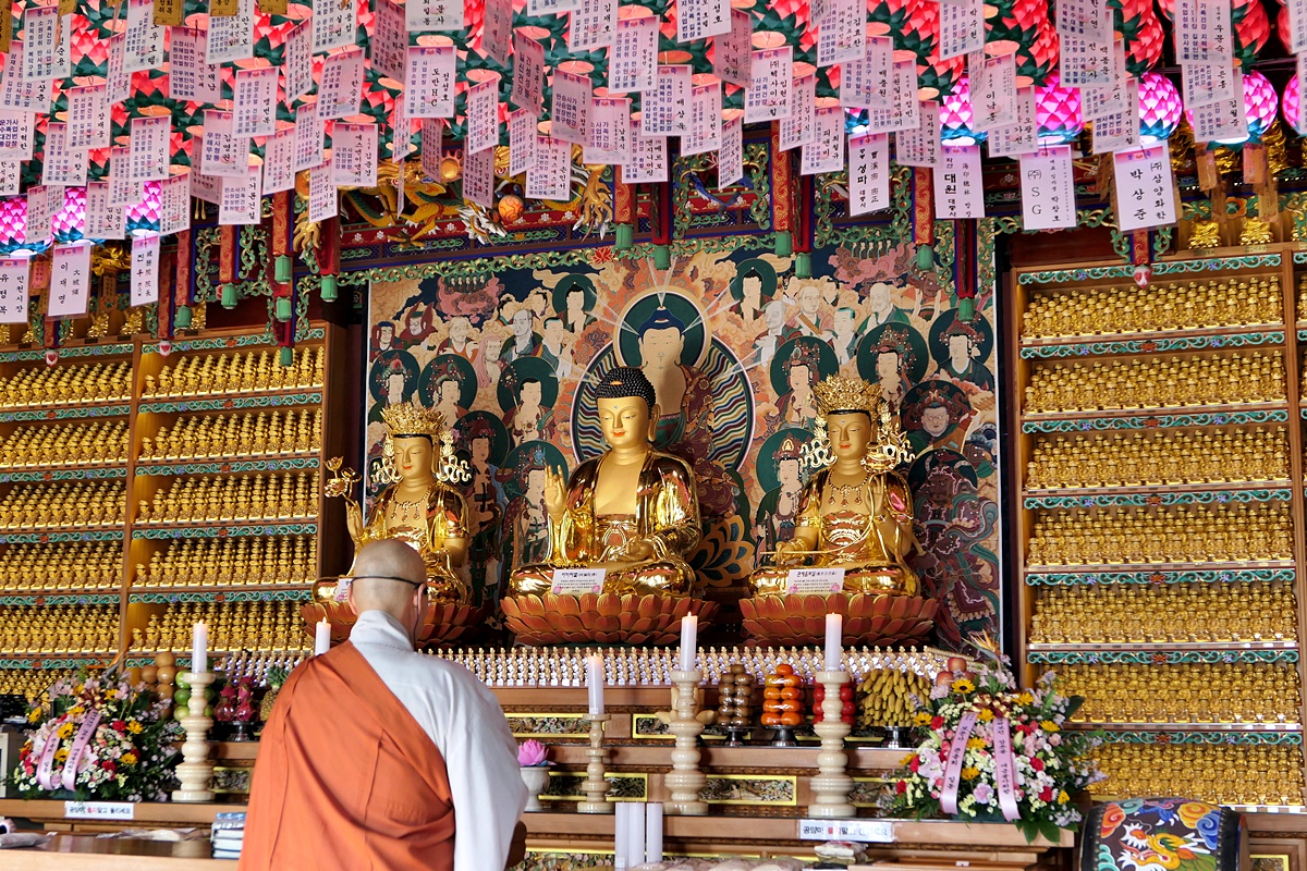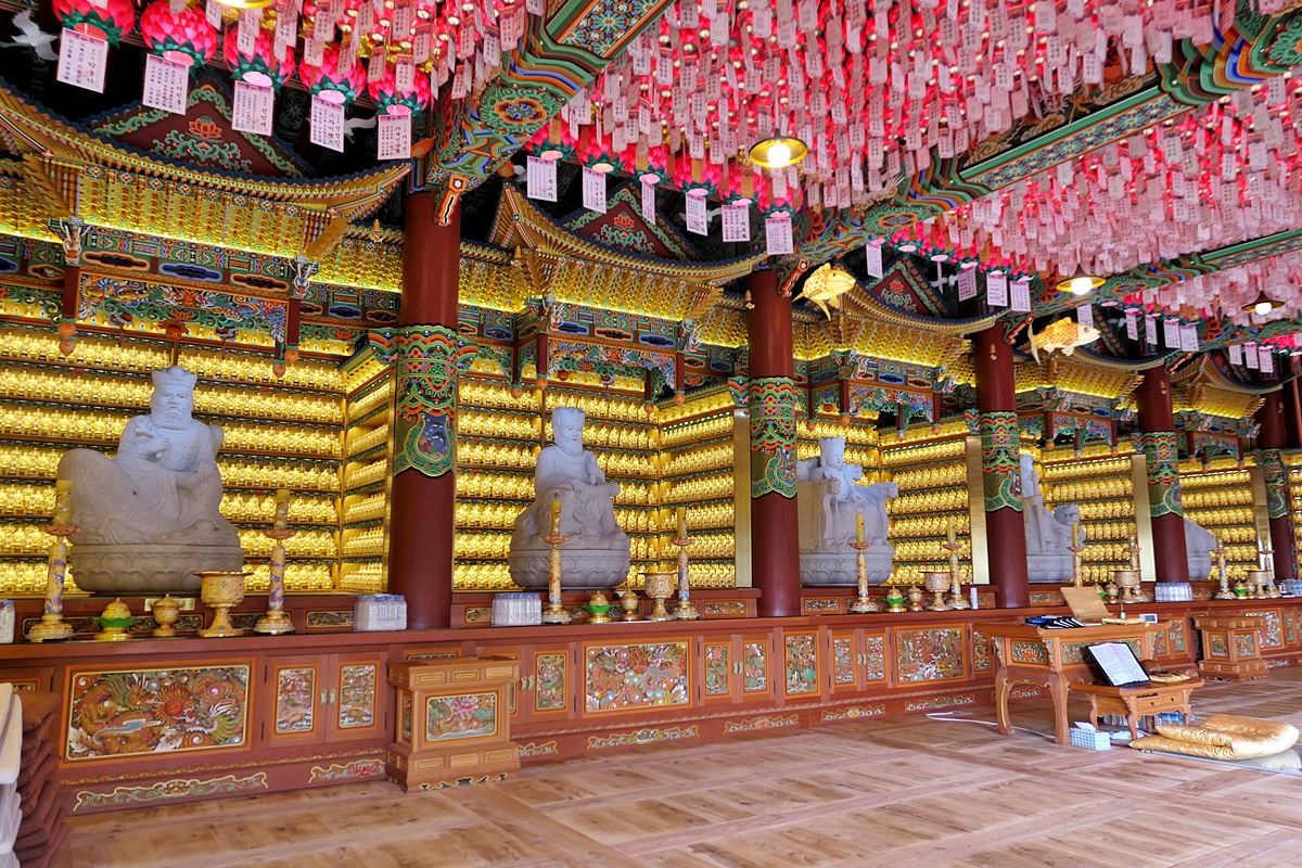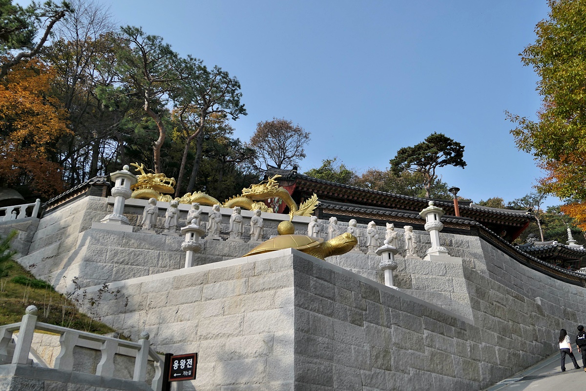낯선 용왕전은 우리나라 유일의 용왕을 모신 전각이라는데 황금빛 용이 여의주를 물고 있는 모습이나 황금 잉어가 여의주를 머리에 이고 있는 형상이 이색적인데 고찰에 어울리는 조형물인지 하는 생각도 드네요.
