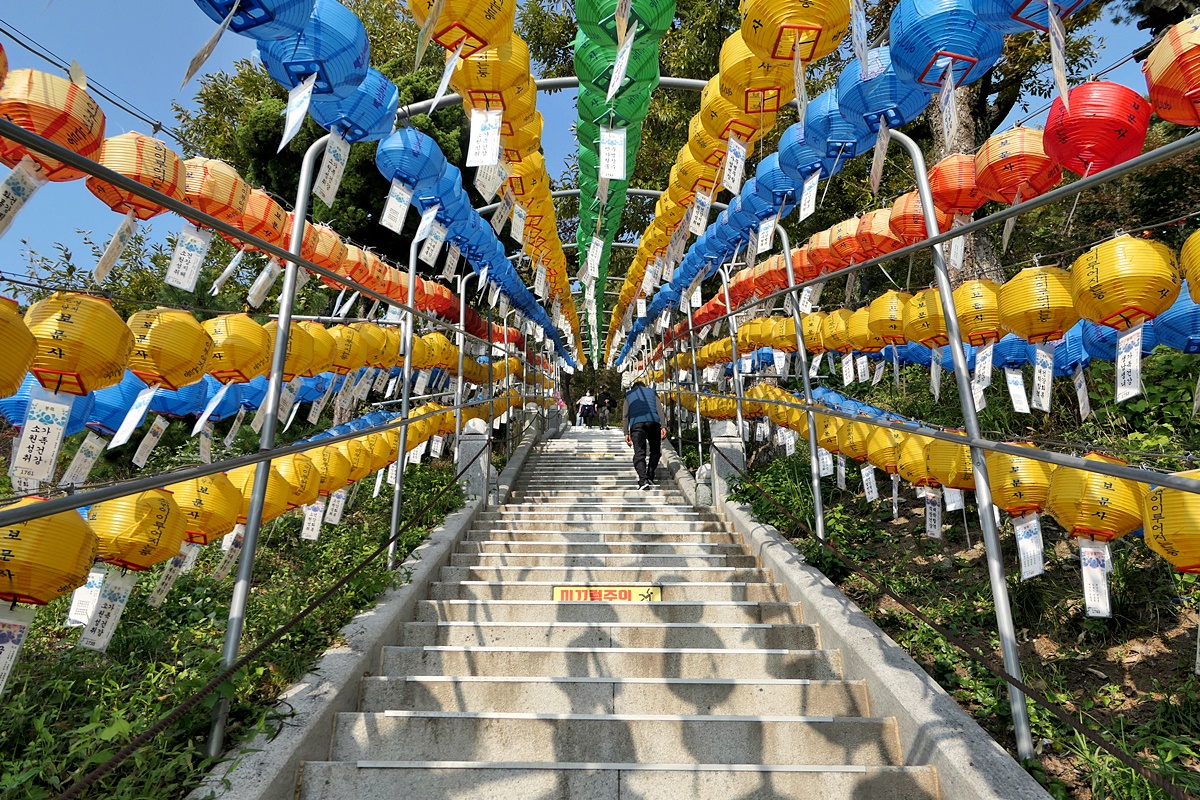 관음보살좌상으로 가는 가파른 경사의 418 계단.