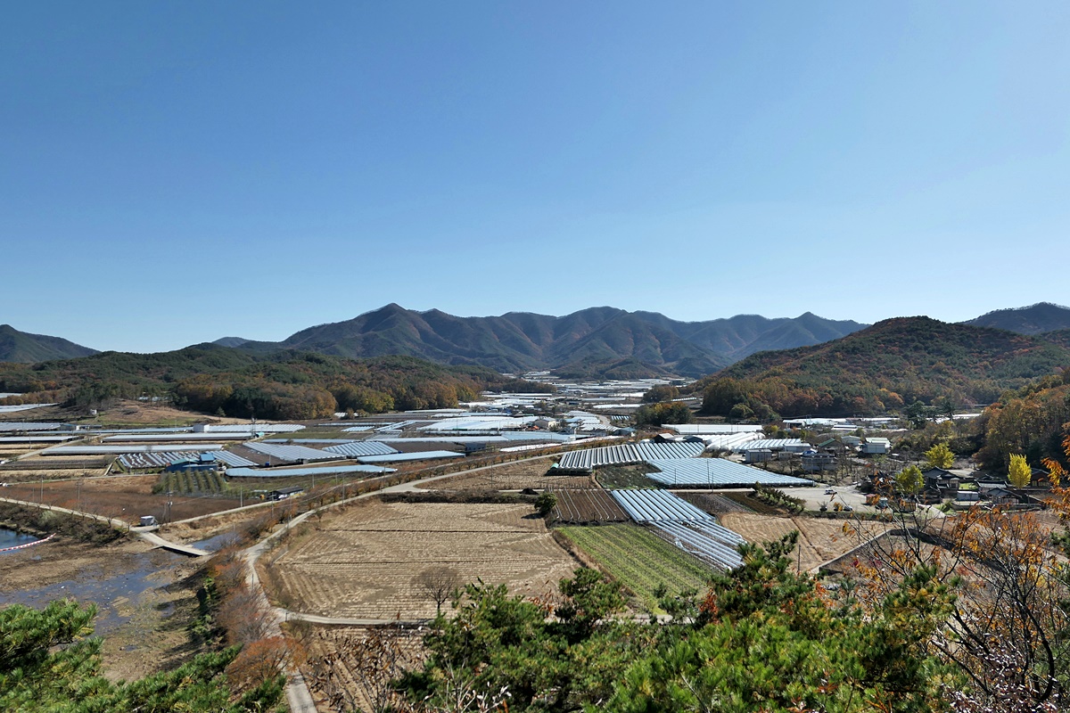 백옥정에서 동쪽으로 바라본 경북 상주군 모동면 수봉리.