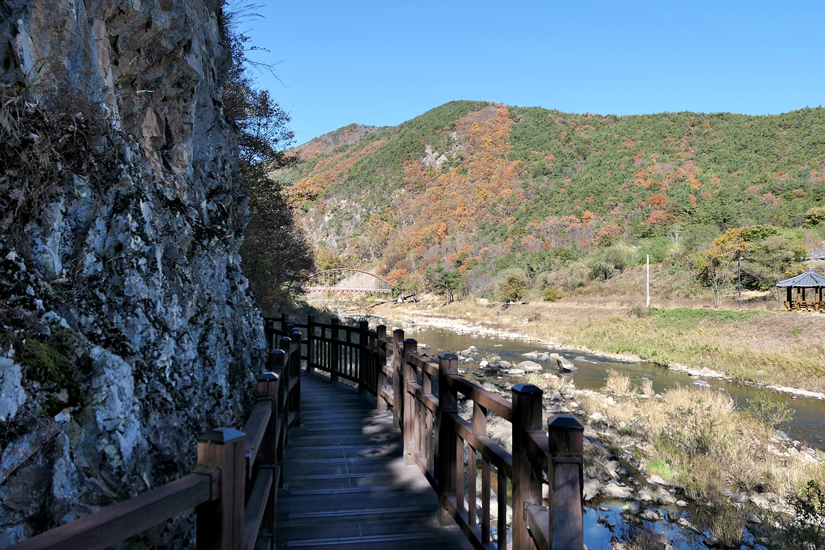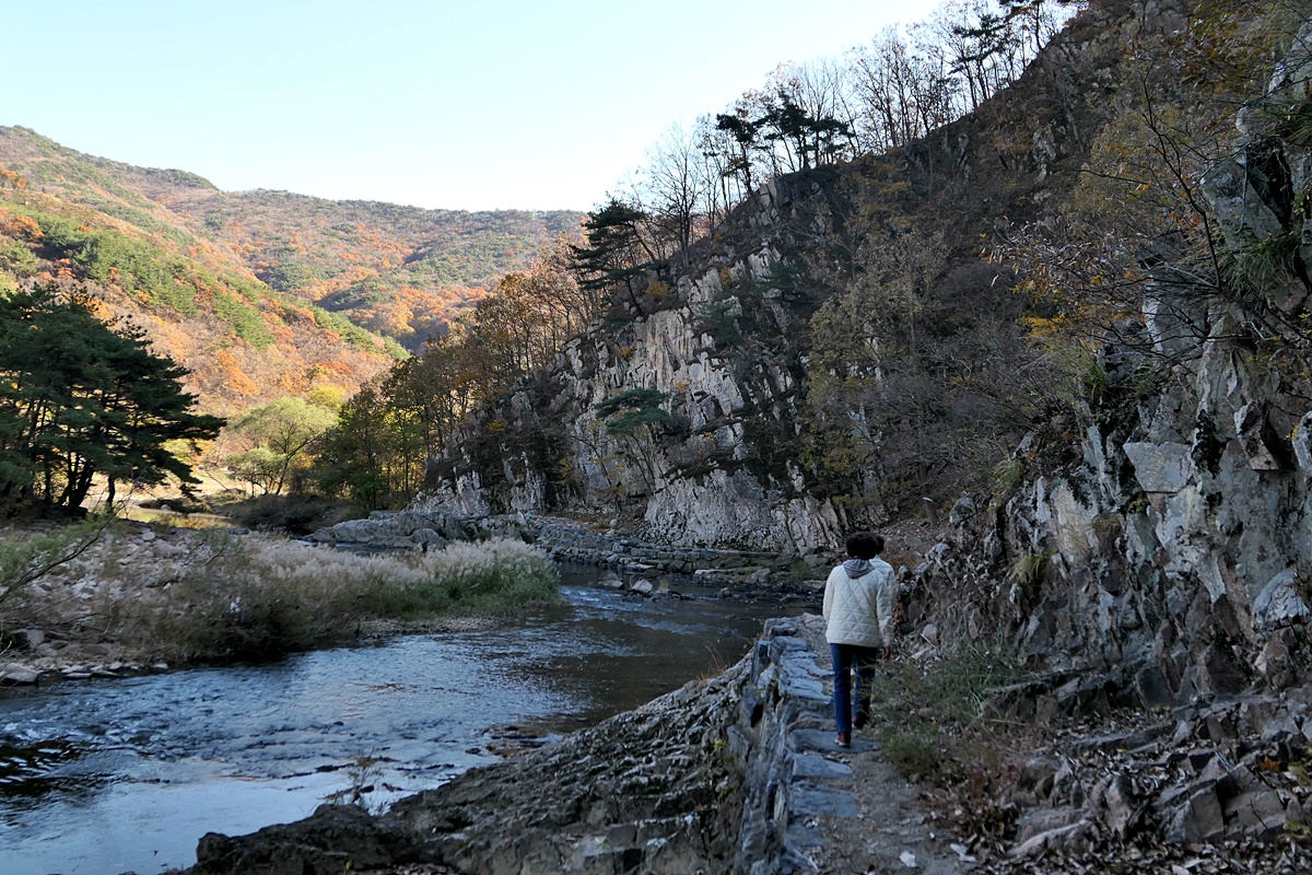 걷는 구간은 구수천 1탄이 시작되는 백옥정부터 8탄에 이르는 반야사까지 약 7km 정도인데 산세가 웅장하고 아름다운 백화산(933m)이 병풍처럼 펼처져 있는 깊은 협곡이 장관입니다.