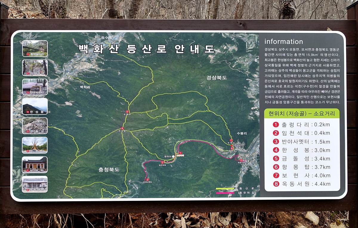 오늘 걸을 백화산 호국의 길(천년옛길) 안내도.