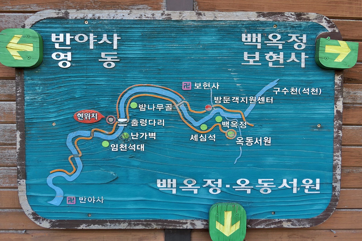 옥동서원~백옥정~세심석~밤나무골~출렁다리~난가벽~임천석대~반야사