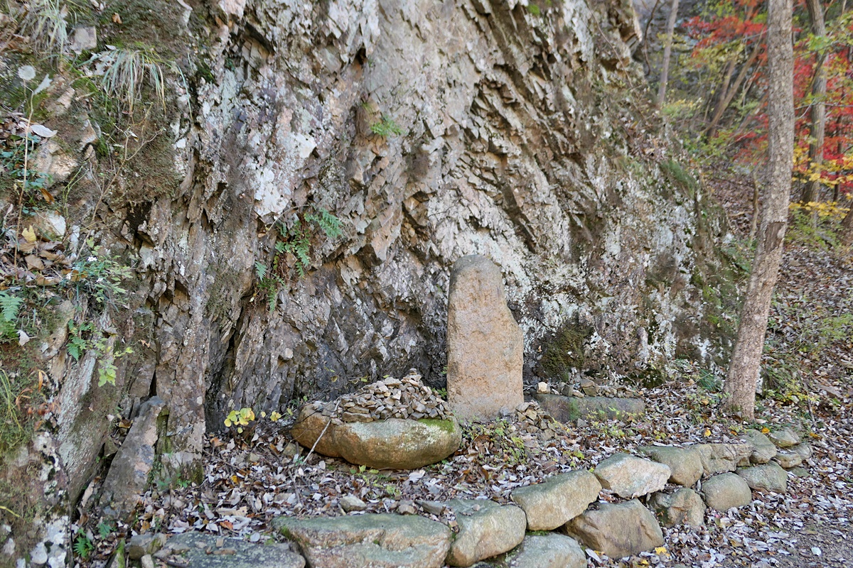 바위절벽 아래는 걷는 제법 험한 옛길.