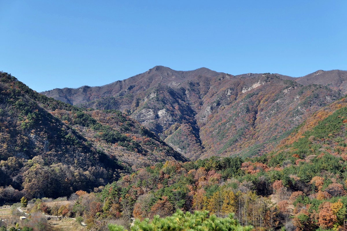 백옥정에서 서쪽으로 바라보이는 백화산.