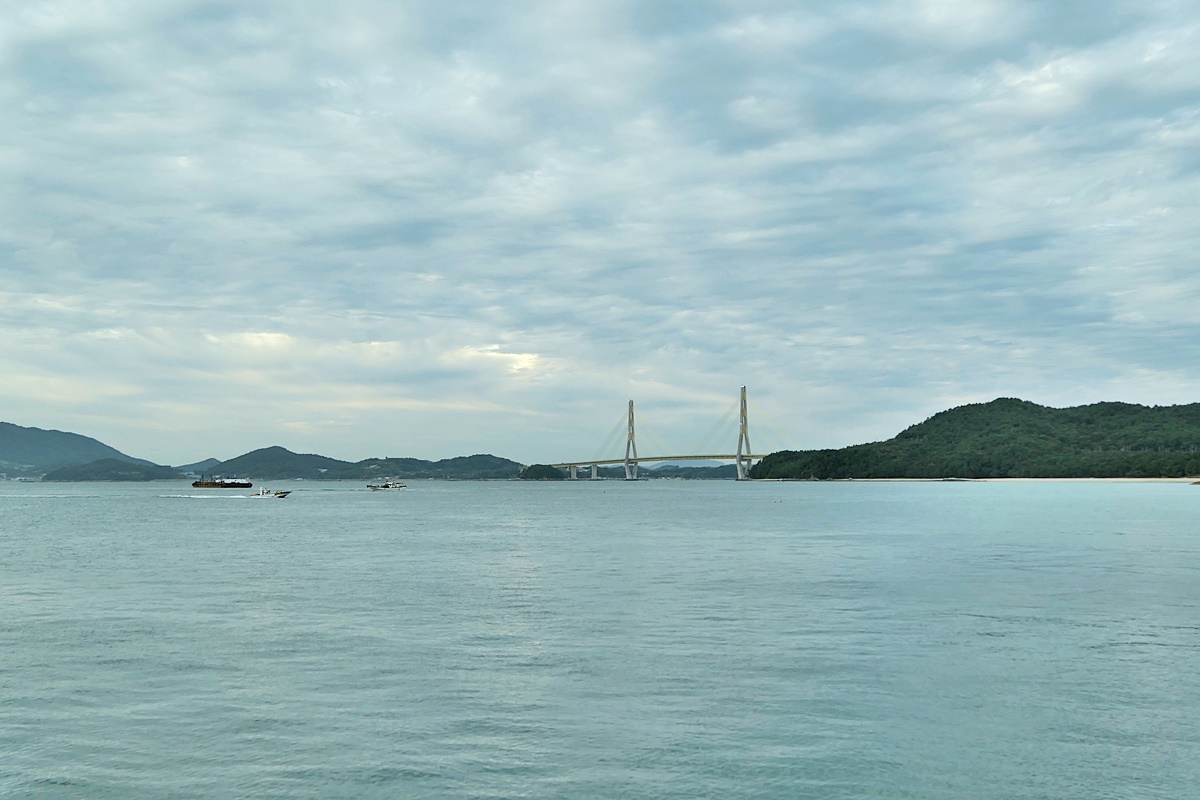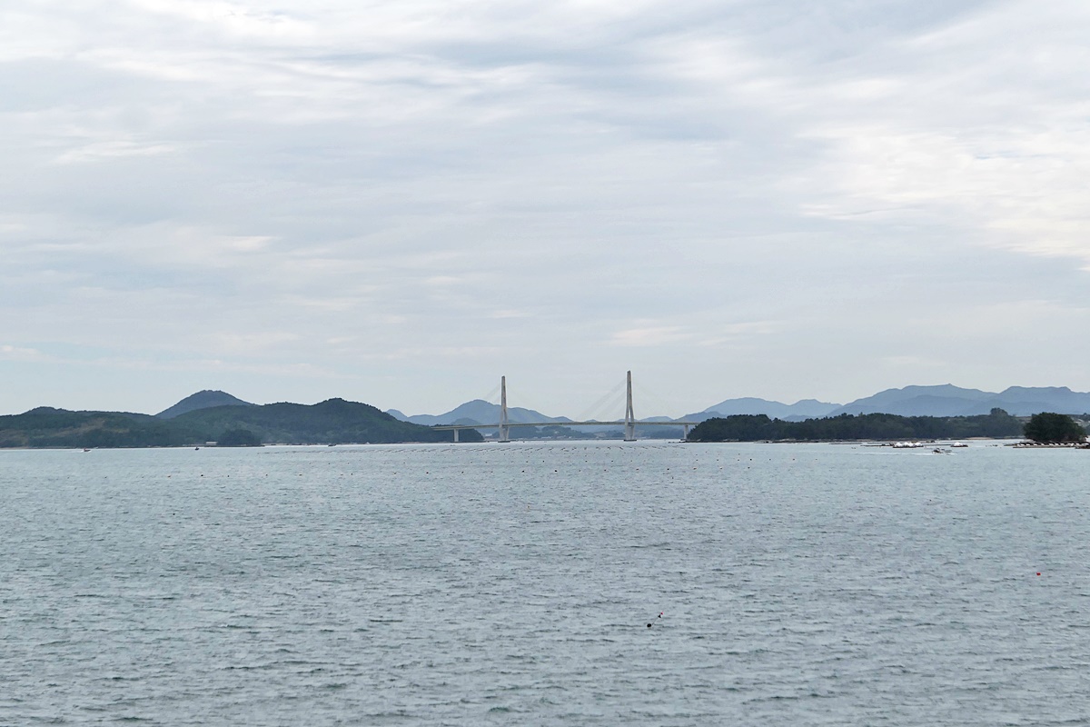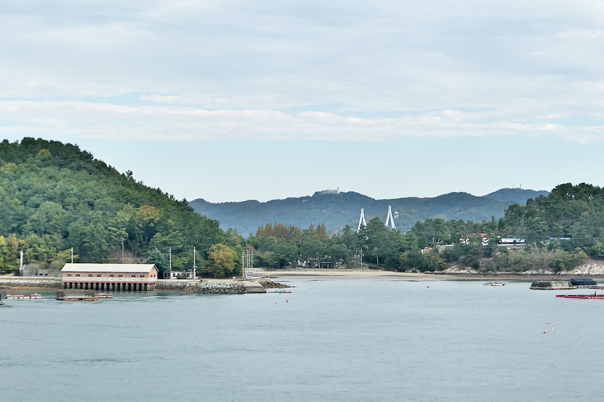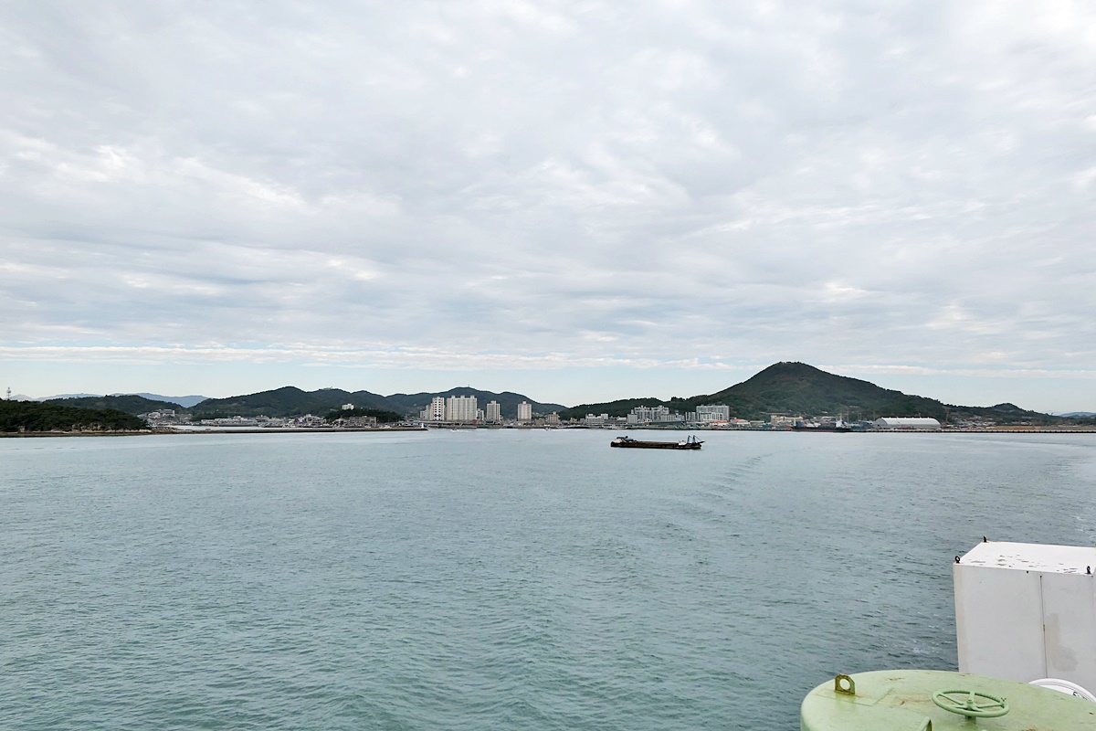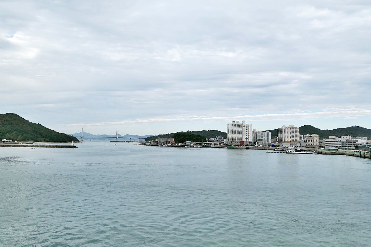 드디어 09:00 출항하는 아리온 제주호에서 바라본 녹동항과 소록대교, 왼쪽은 소록도.