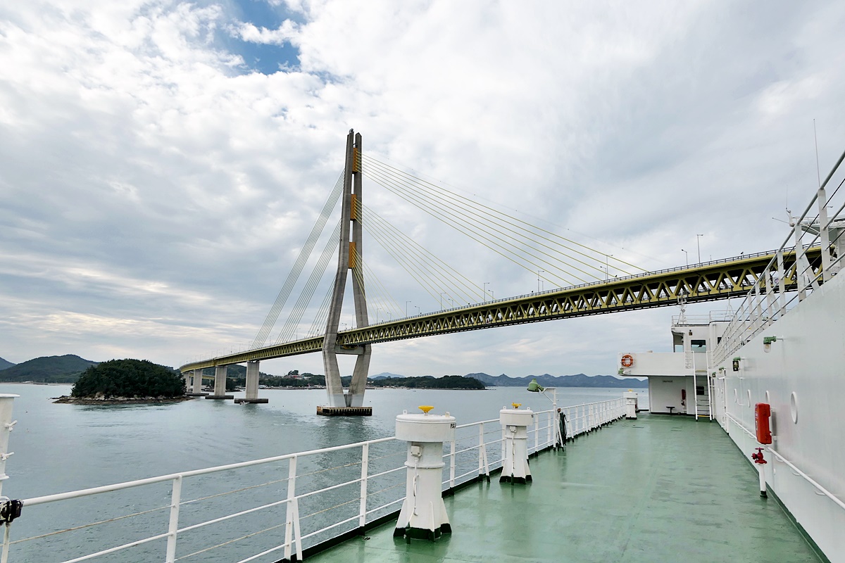 거금대교 아래를 지나는 아리온 제주호.