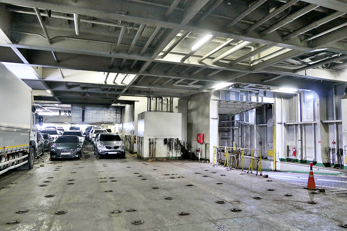 저층 적재공간에 있던 자차를 탄채 무사히 하선 완료.