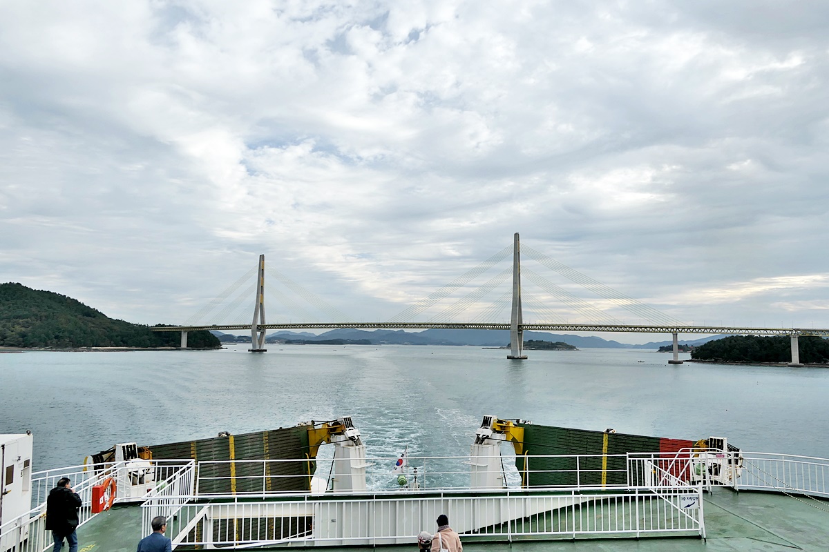 아리온 제주호에서 바라본 소록도와 소록대교.