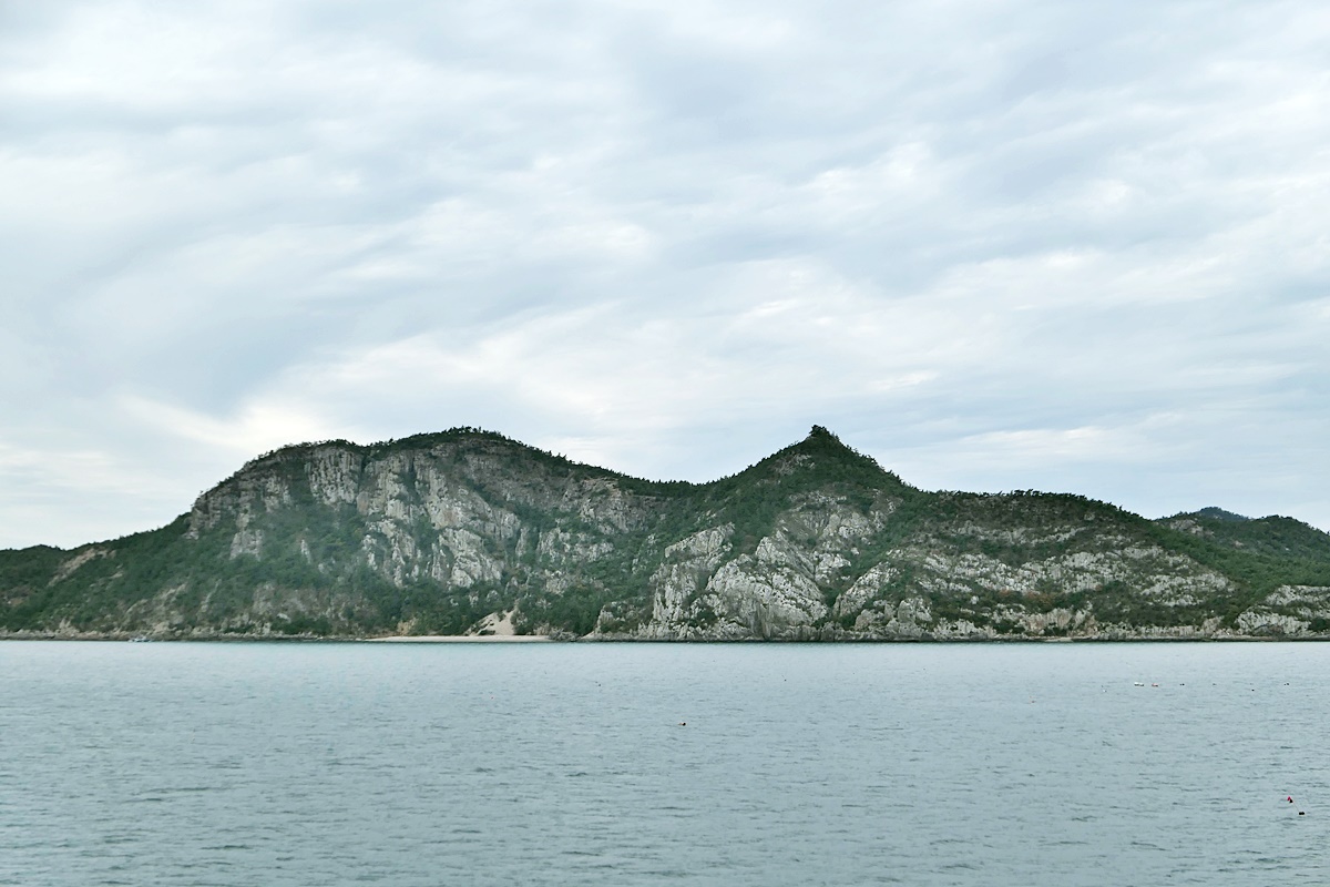 별도봉과 비슷한 높이여서 쌍둥이처럼 보이며 오른편에 산지등대가 살짝 보이네요.