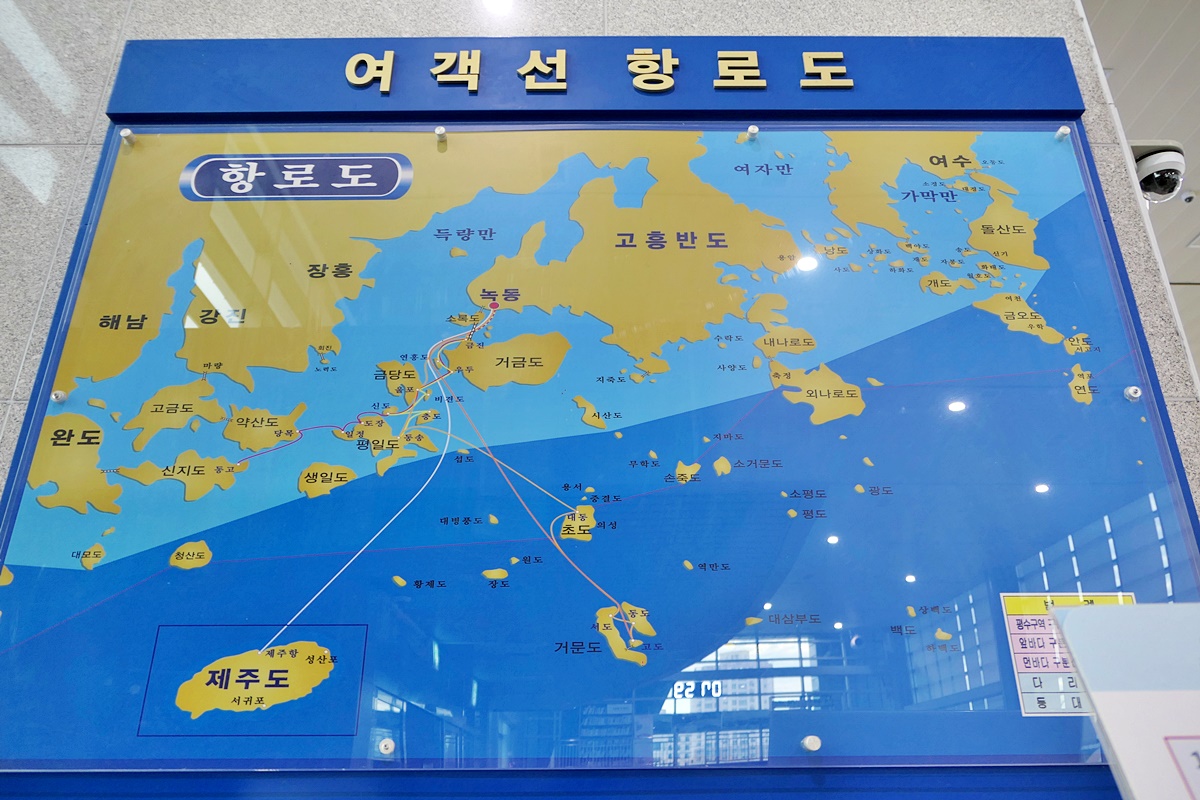 고흥 녹동신항에서 제주도로 가는 항로.